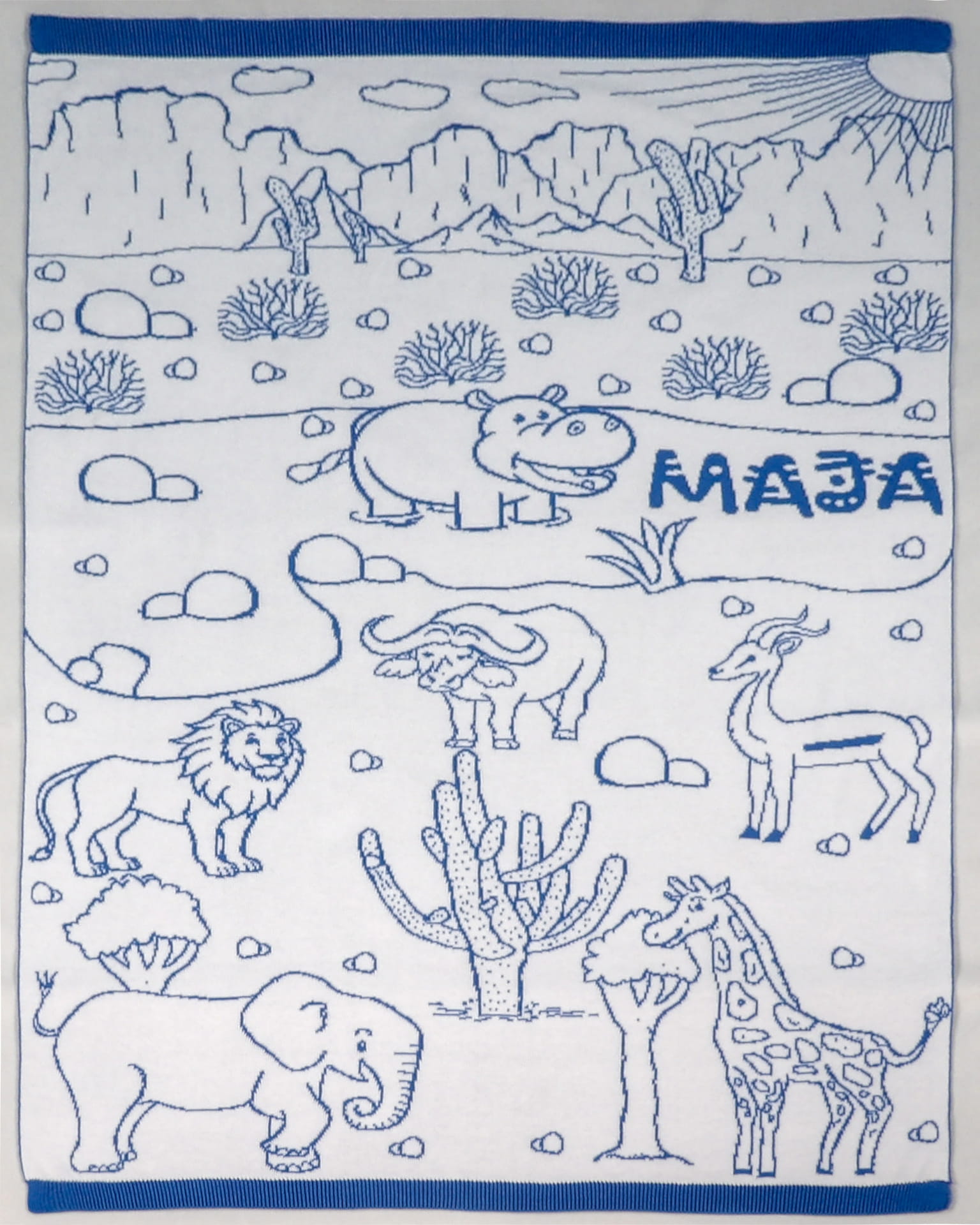 Koc Afryka Personalizowany to wyjątkowy kocyk wykonany z miękkiej dzianiny żakardowej ze 100% naturalnej bawełny.