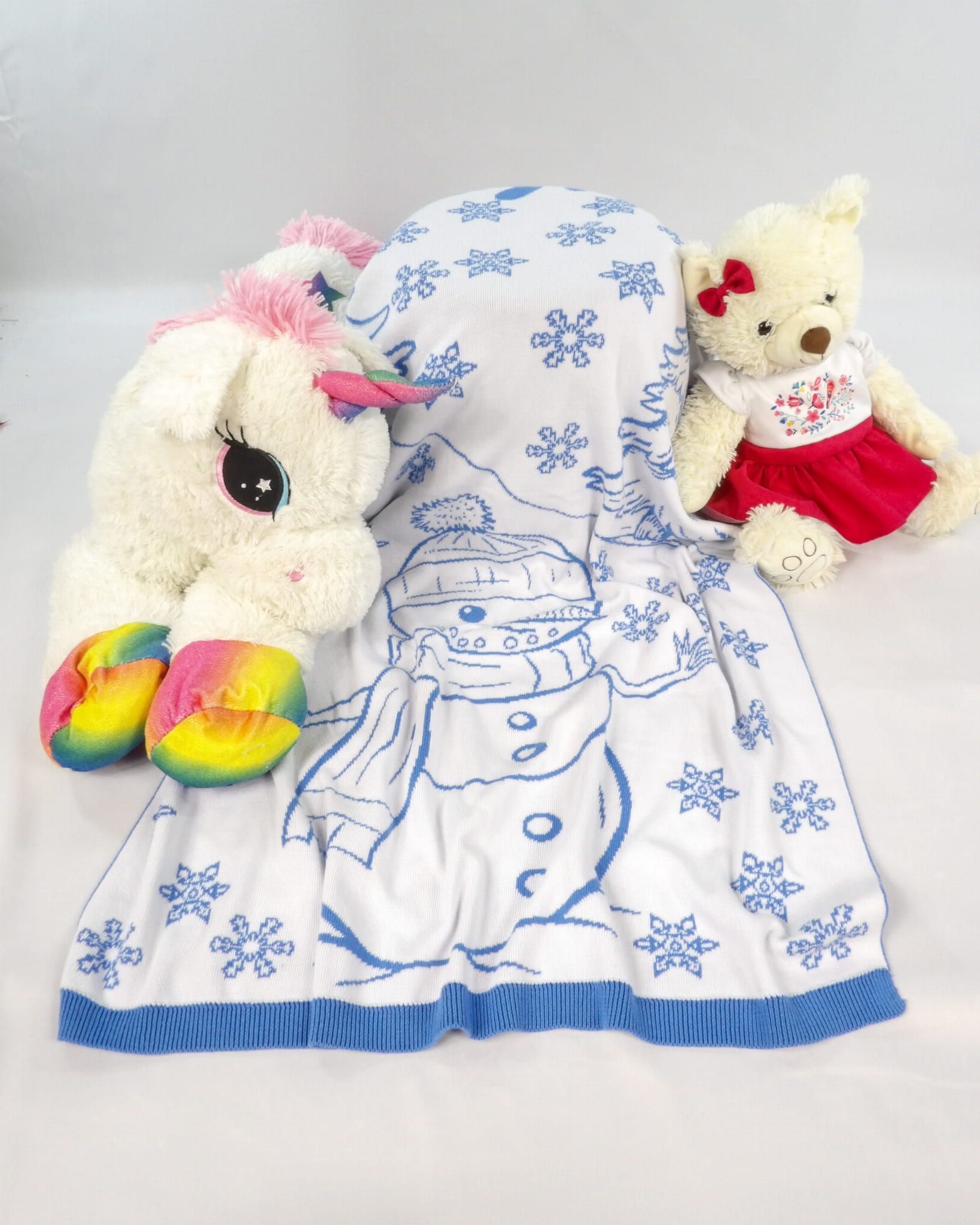 Miękki, żakardowy Kocyk Bałwanek z 100% bawełny i certyfikatem OEKO-TEX®.