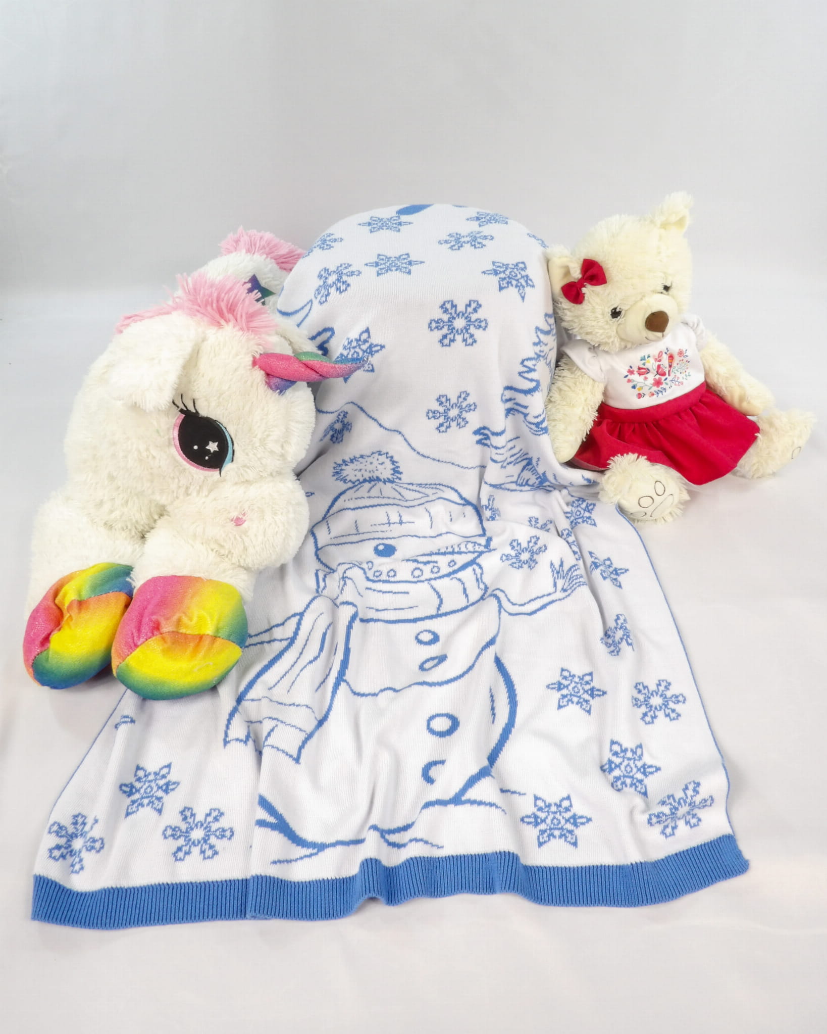 Personalizowany, żakardowy Kocyk Bałwanek z 100% bawełny i certyfikatem OEKO-TEX®.