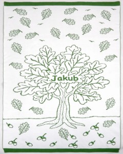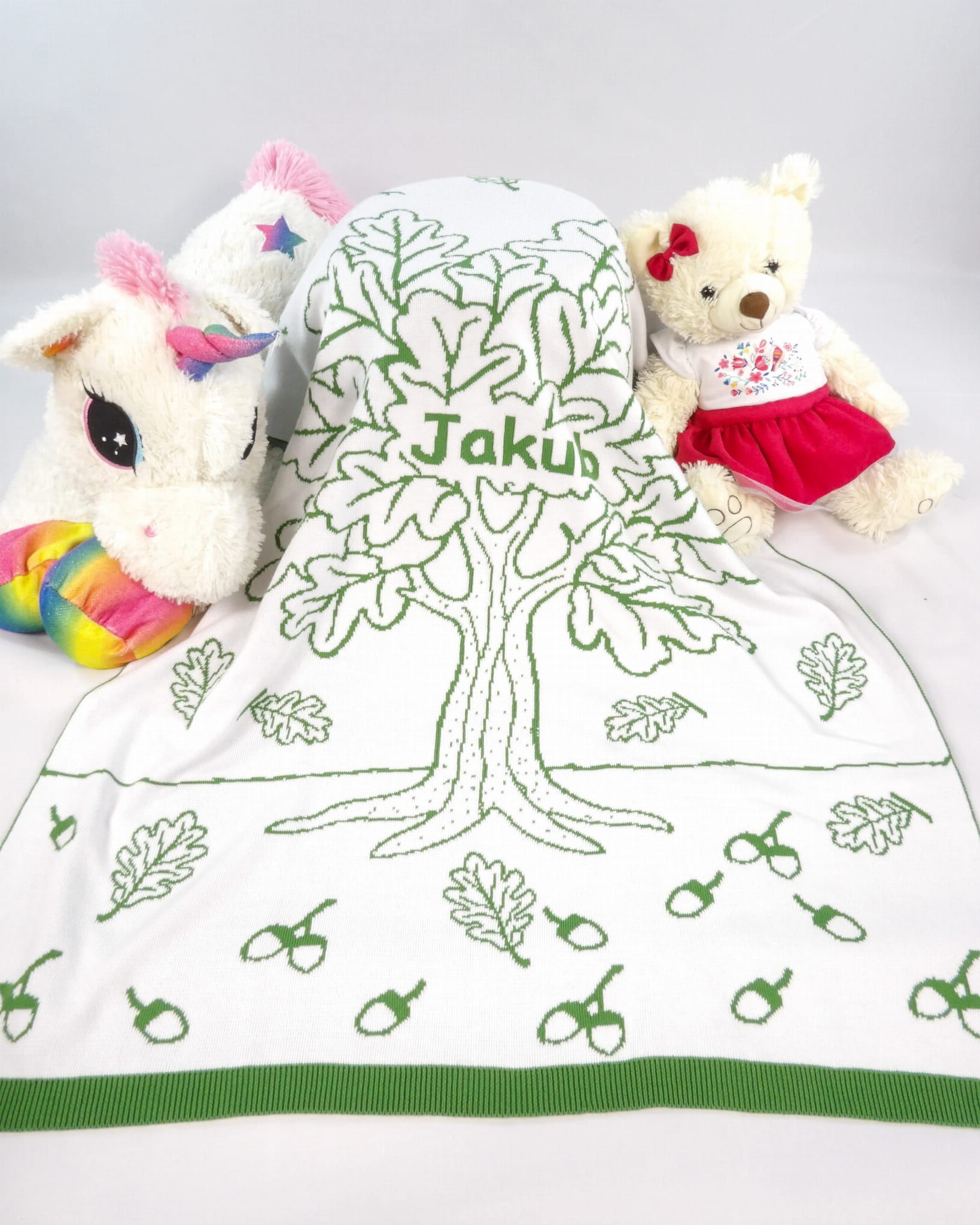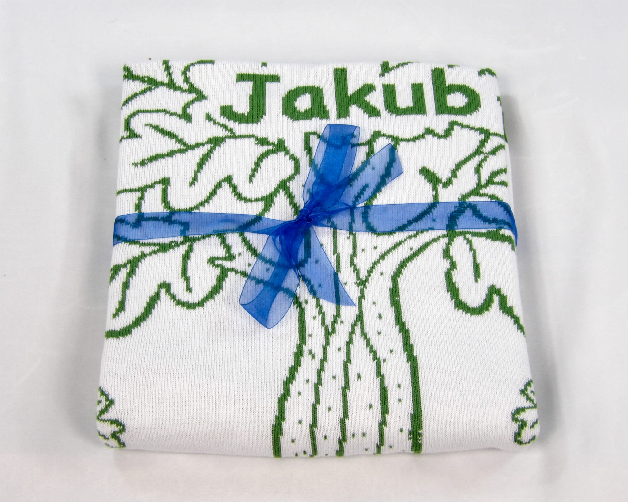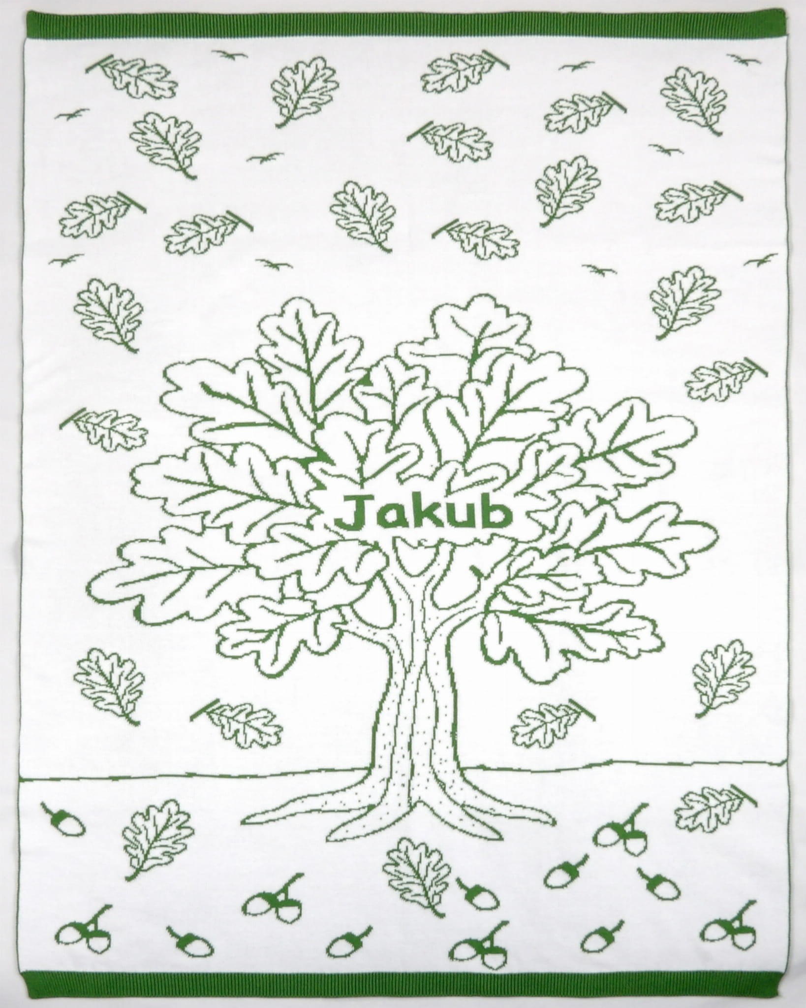 Personalizowany, żakardowy kocyk Drzewo z 100% bawełny i certyfikatem OEKO-TEX®.