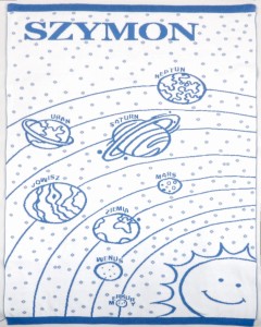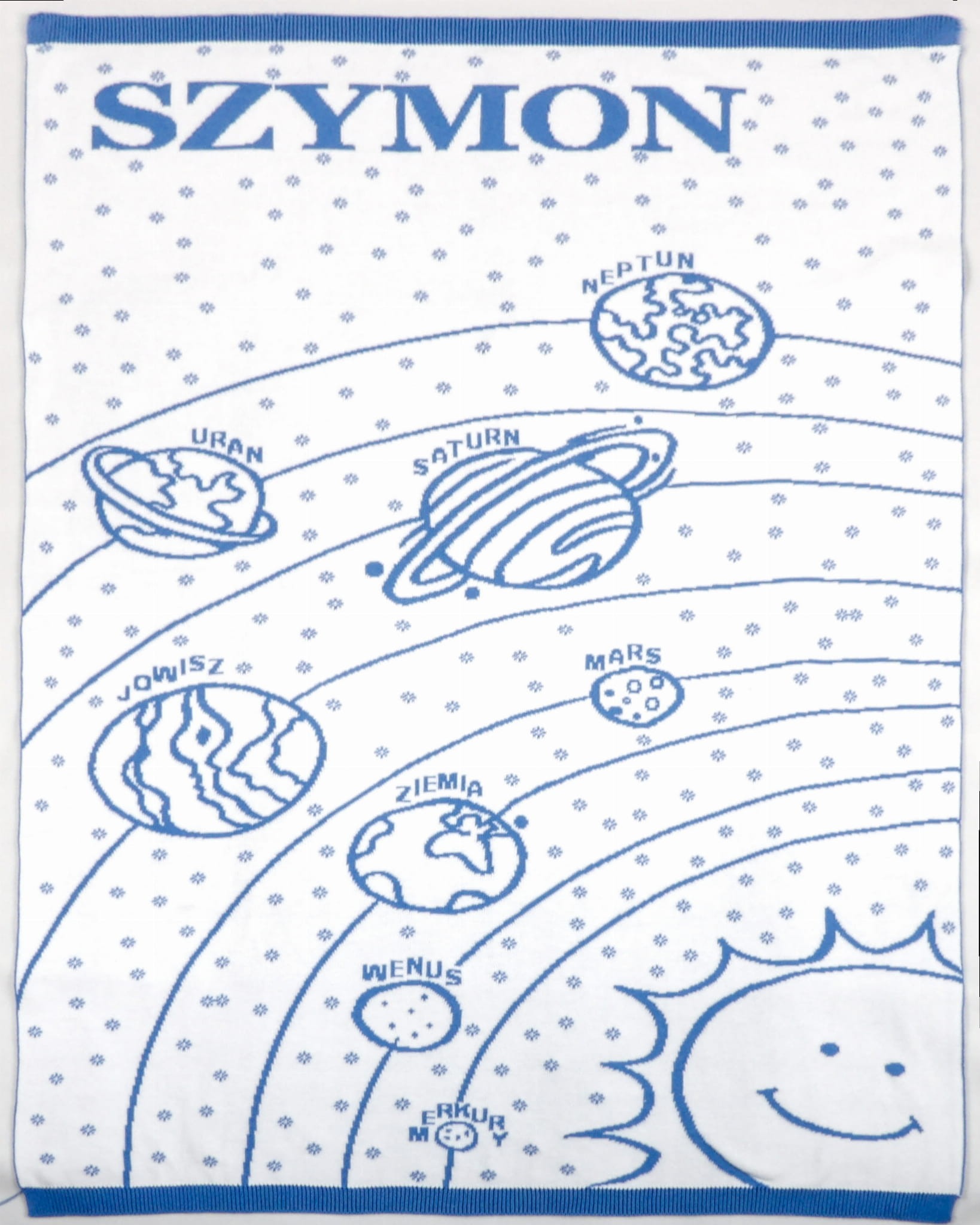 Koc Kosmos Personalizowany to wyjątkowy kocyk wykonany z miękkiej dzianiny żakardowej ze 100% naturalnej bawełny.