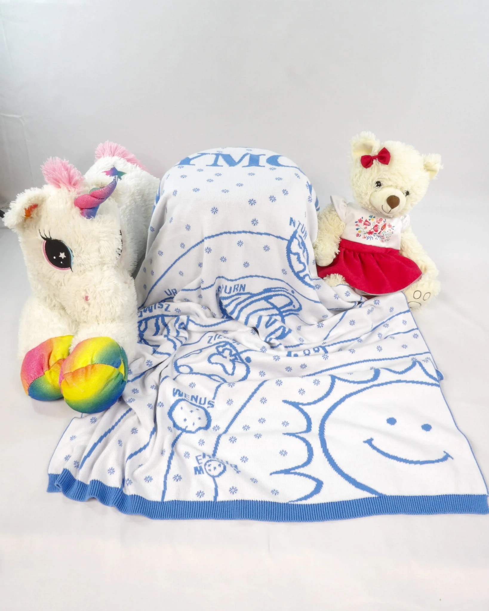 Każdy kocyk można w pełni spersonalizować, dodając imię dziecka, datę i godzinę urodzenia, wagę, wzrost oraz indywidualną dedykację.