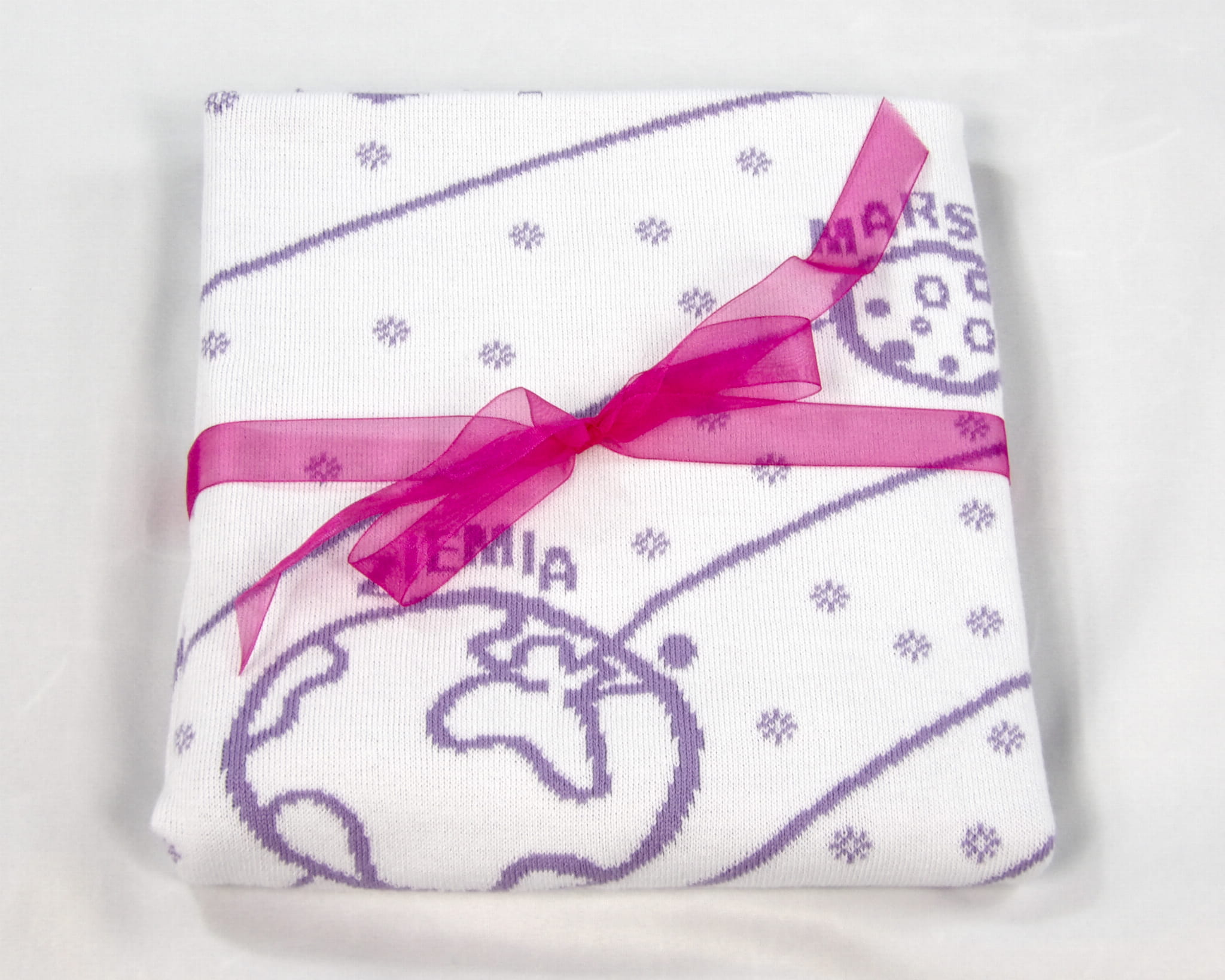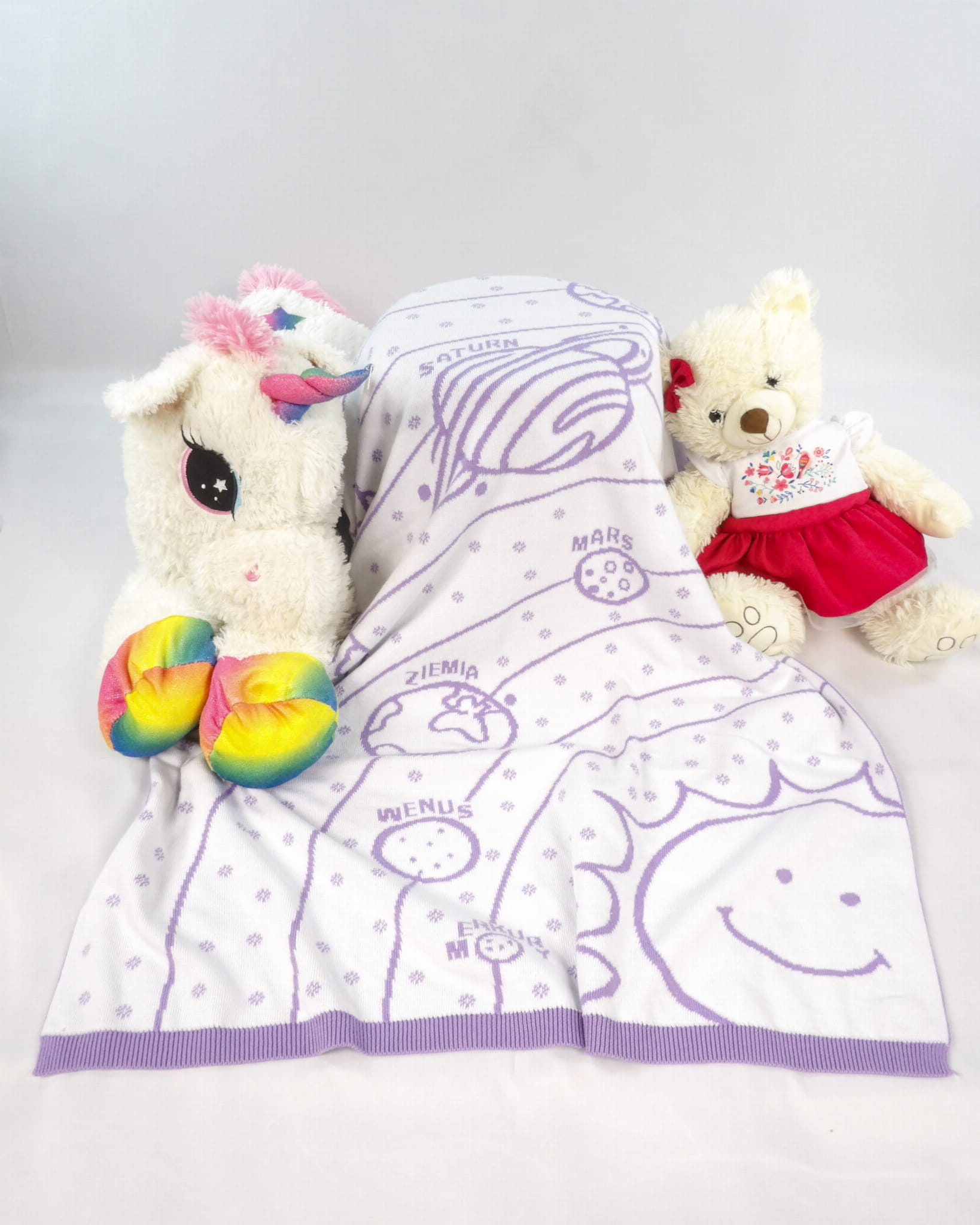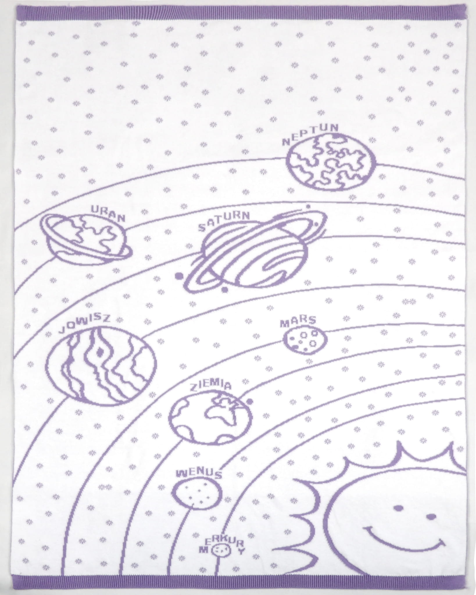Koc Kosmos to wyjątkowy kocyk wykonany z miękkiej dzianiny żakardowej ze 100% naturalnej bawełny.