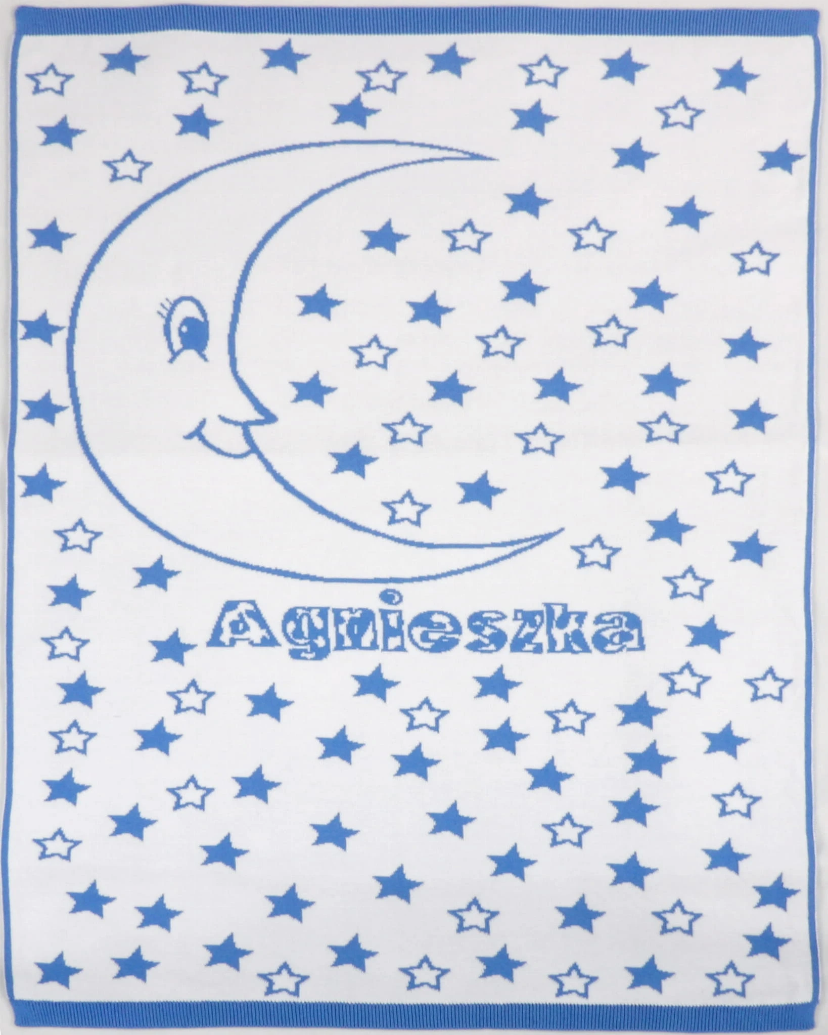 Koc Księżycowa Noc Personalizowany to wyjątkowy kocyk wykonany z miękkiej dzianiny żakardowej ze 100% naturalnej bawełny.