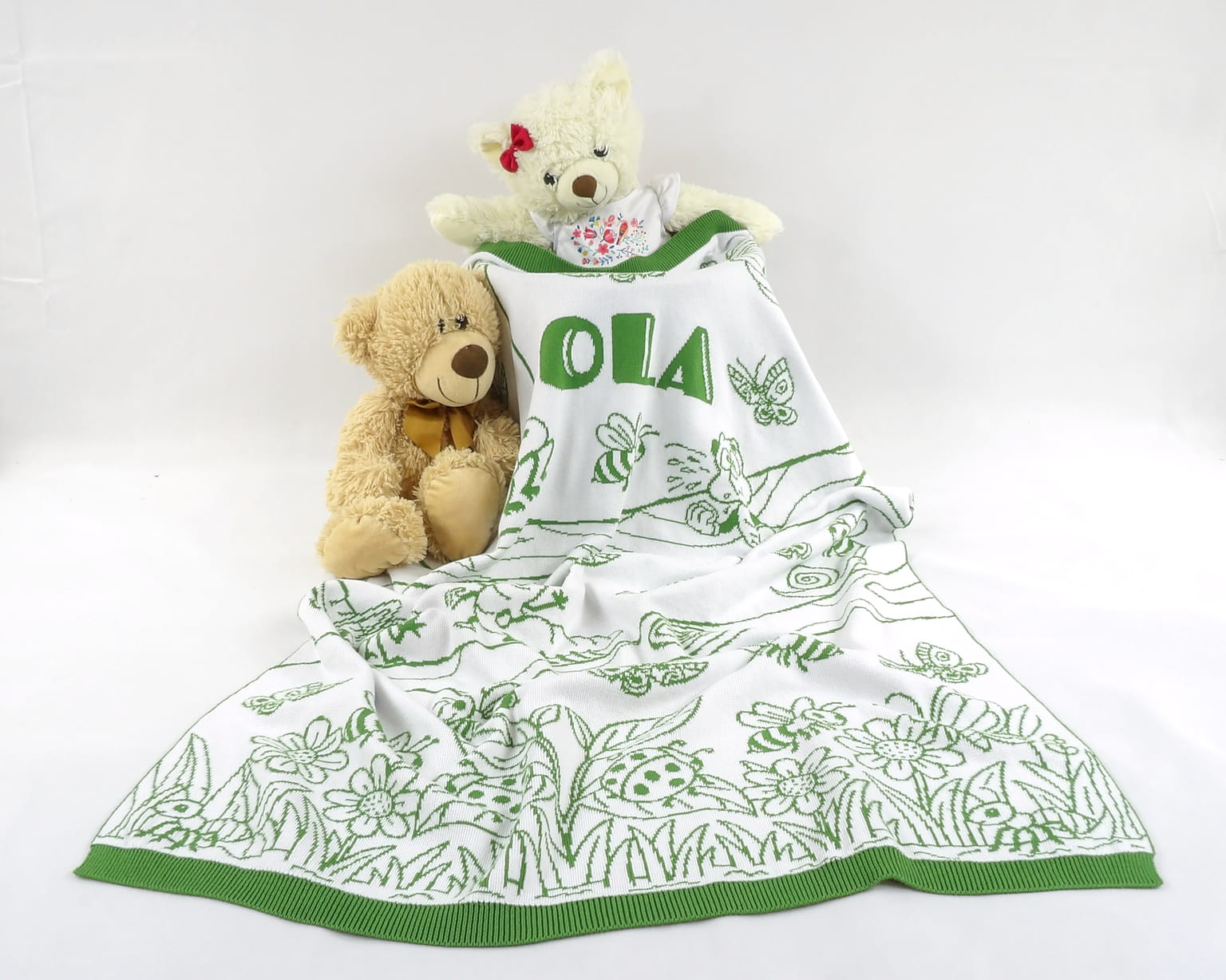 Personalizowany, żakardowy Kocyk Owady z 100% bawełny i certyfikatem OEKO-TEX®.