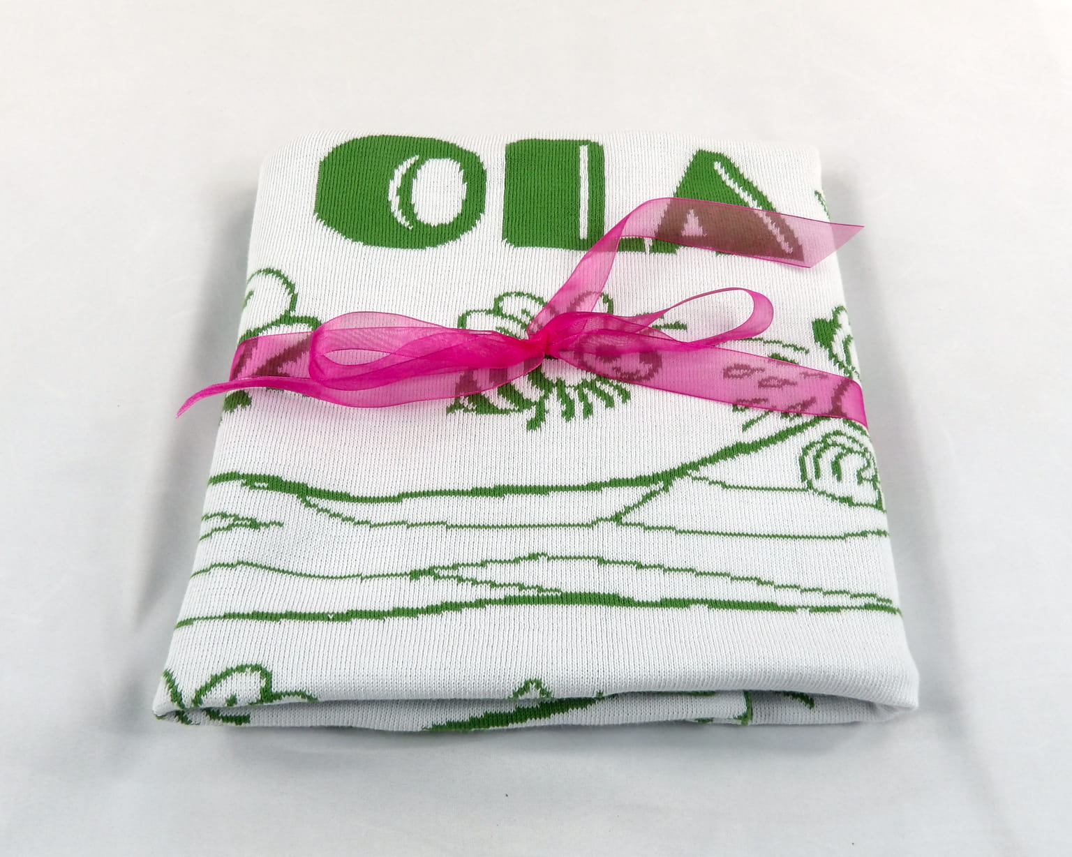 Koc Owady Personalizowany to wyjątkowy kocyk wykonany z miękkiej dzianiny żakardowej ze 100% naturalnej bawełny.