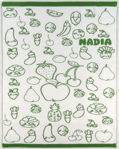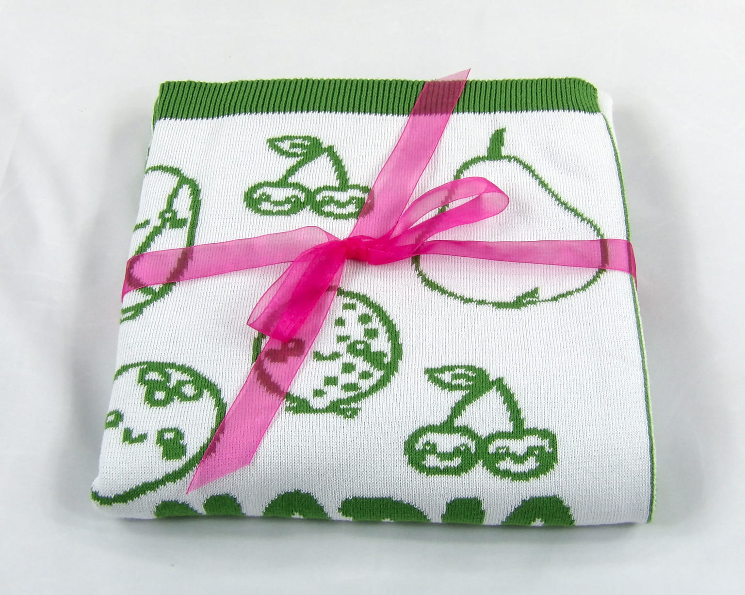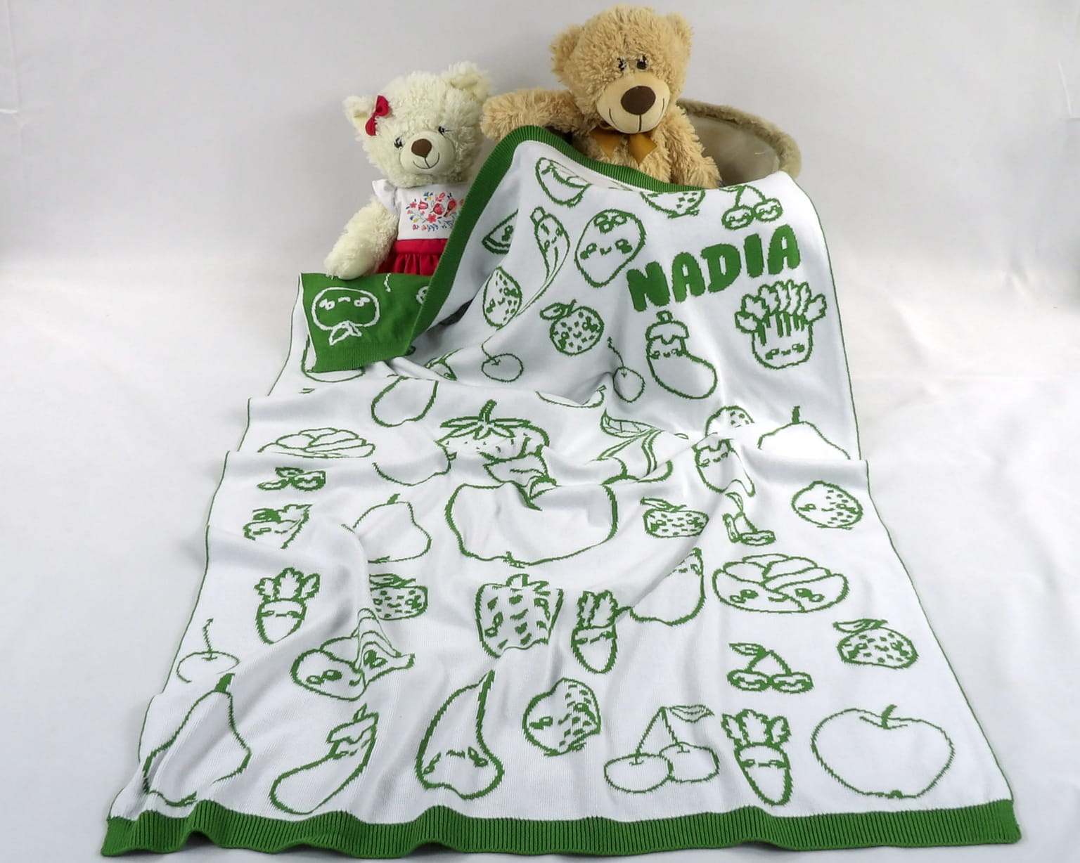 Personalizowany, żakardowy Kocyk Owoce z 100% bawełny i certyfikatem OEKO-TEX®.