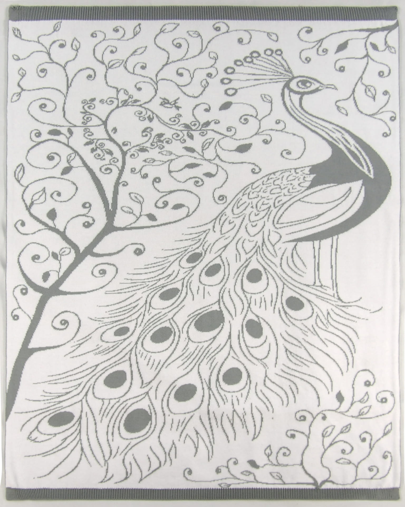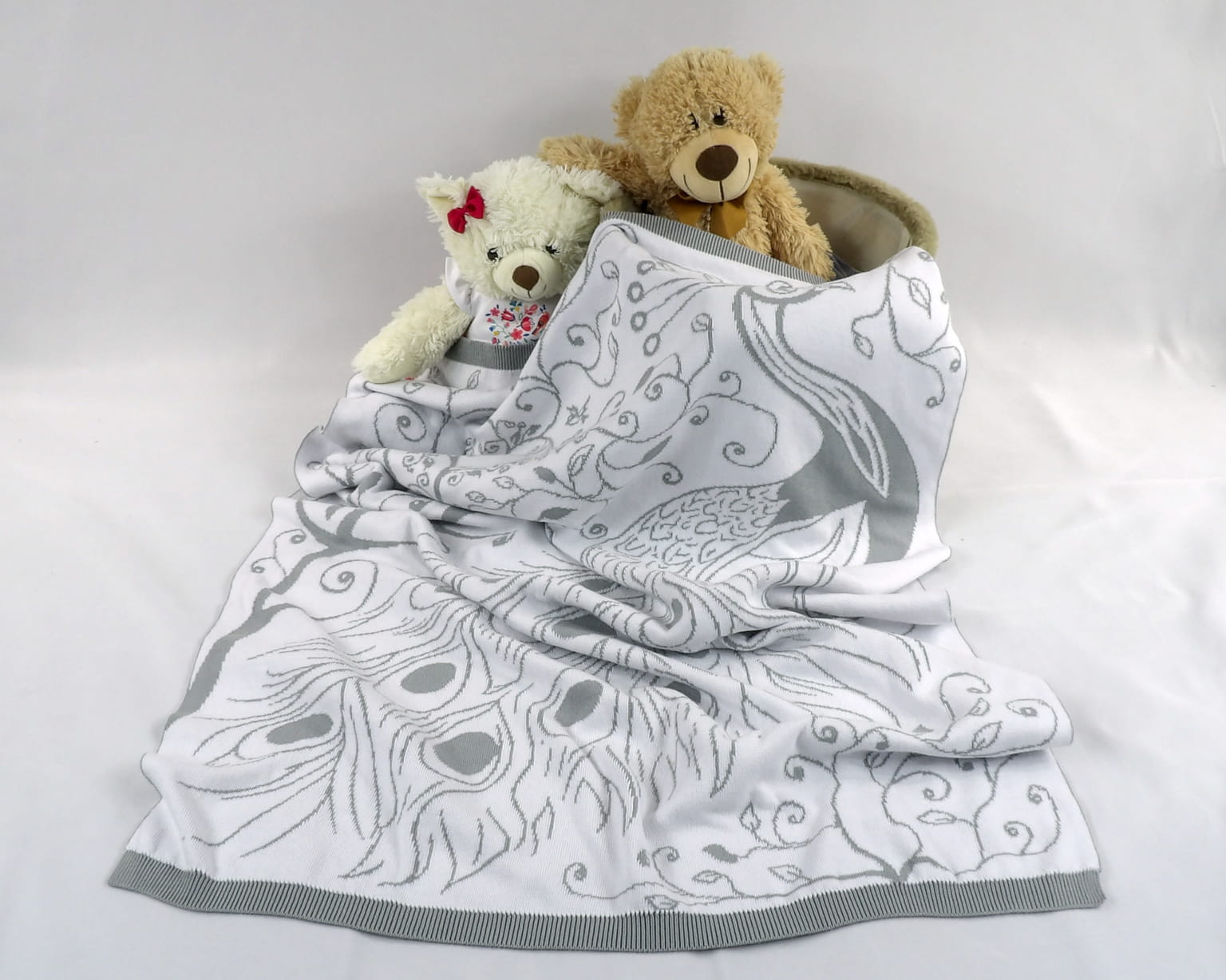 Miękki, żakardowy Kocyk Paw z 100% bawełny i certyfikatem OEKO-TEX®.