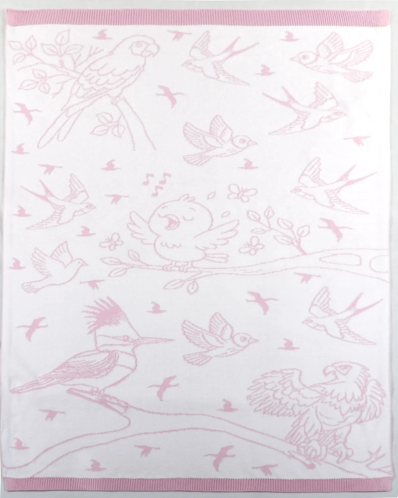 Miękki, żakardowy Kocyk Ptaki z 100% bawełny i certyfikatem OEKO-TEX®.