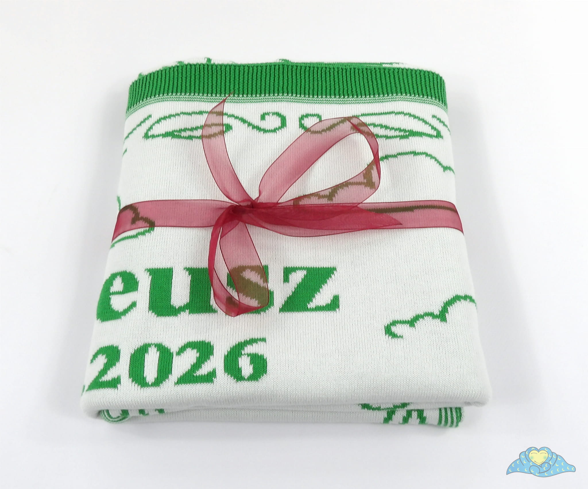 Personalizowany, żakardowy (nie jest to nadruk ani haft) Kocyk Renifery z 100% bawełny organicznej.