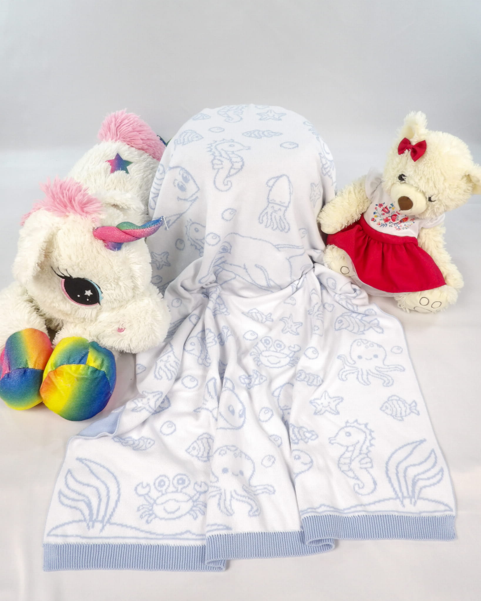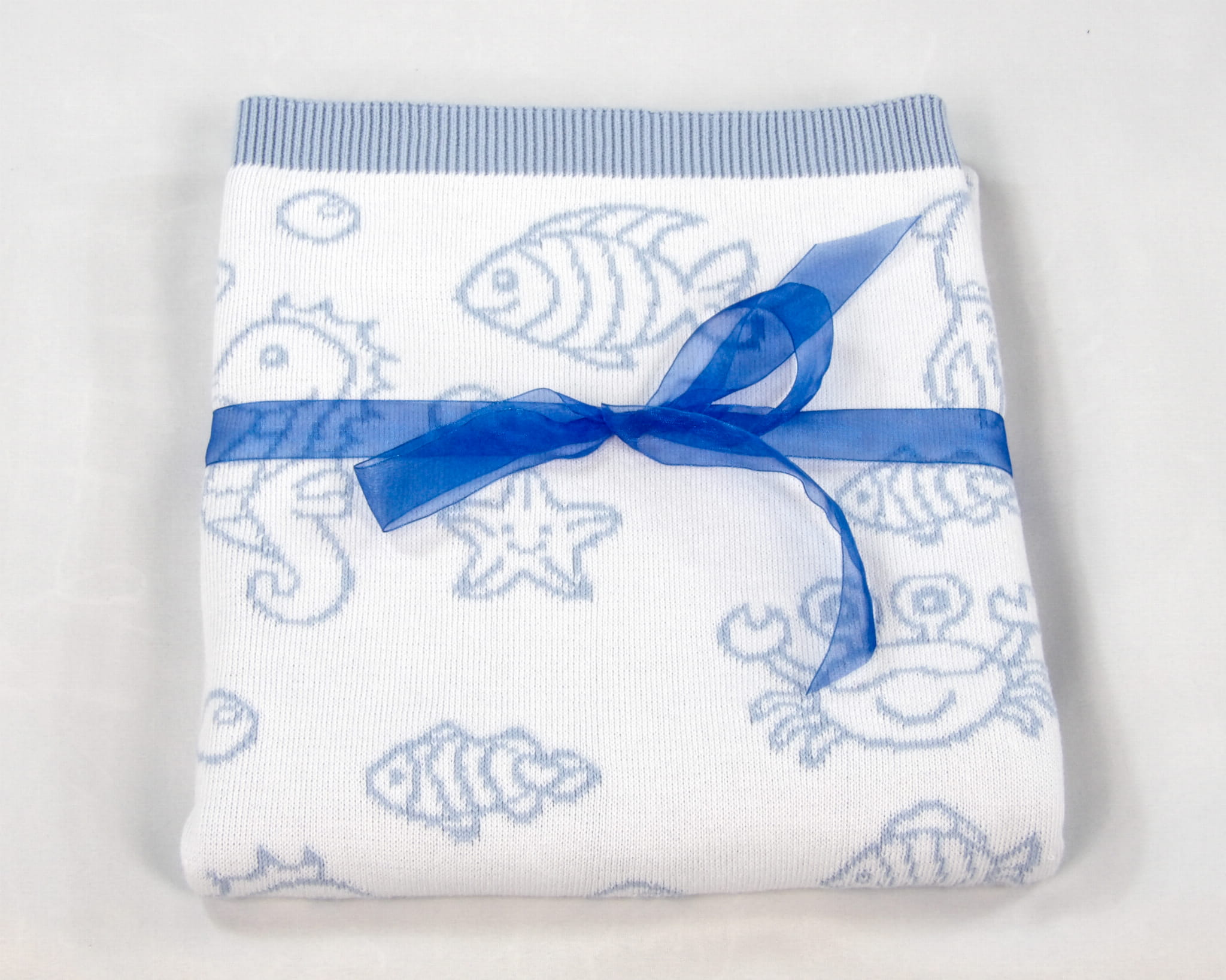 Miękki, żakardowy Kocyk Rybki z 100% bawełny i certyfikatem OEKO-TEX®.