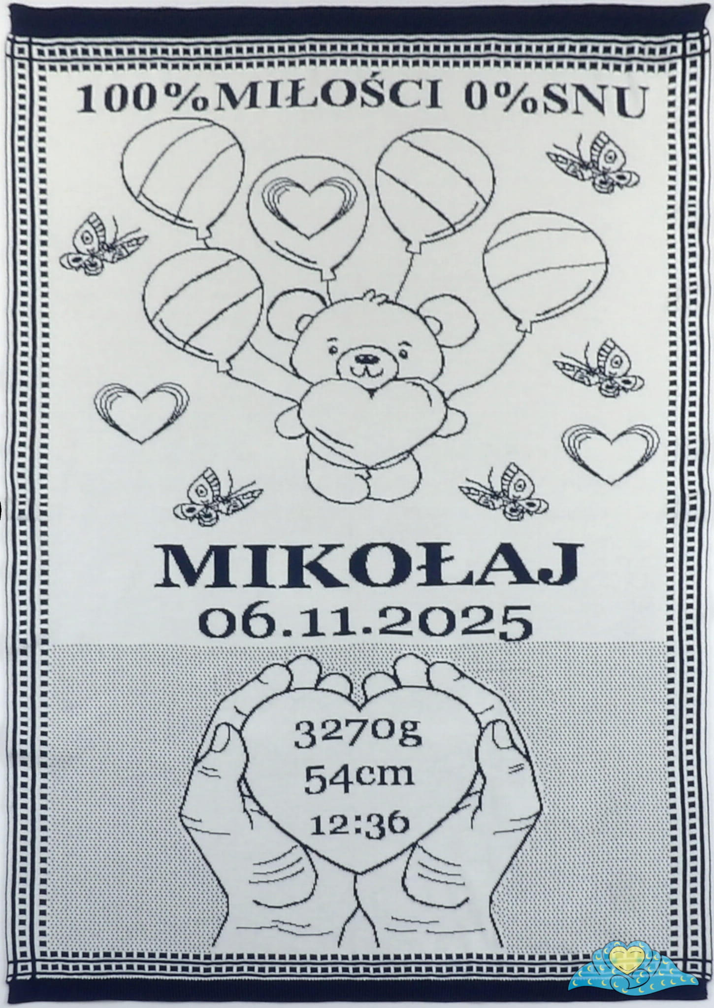 Koc Serce Personalizowany to wyjątkowy kocyk z miękkiej dzianiny żakardowej wykonany ze 100% naturalnej bawełny organicznej.