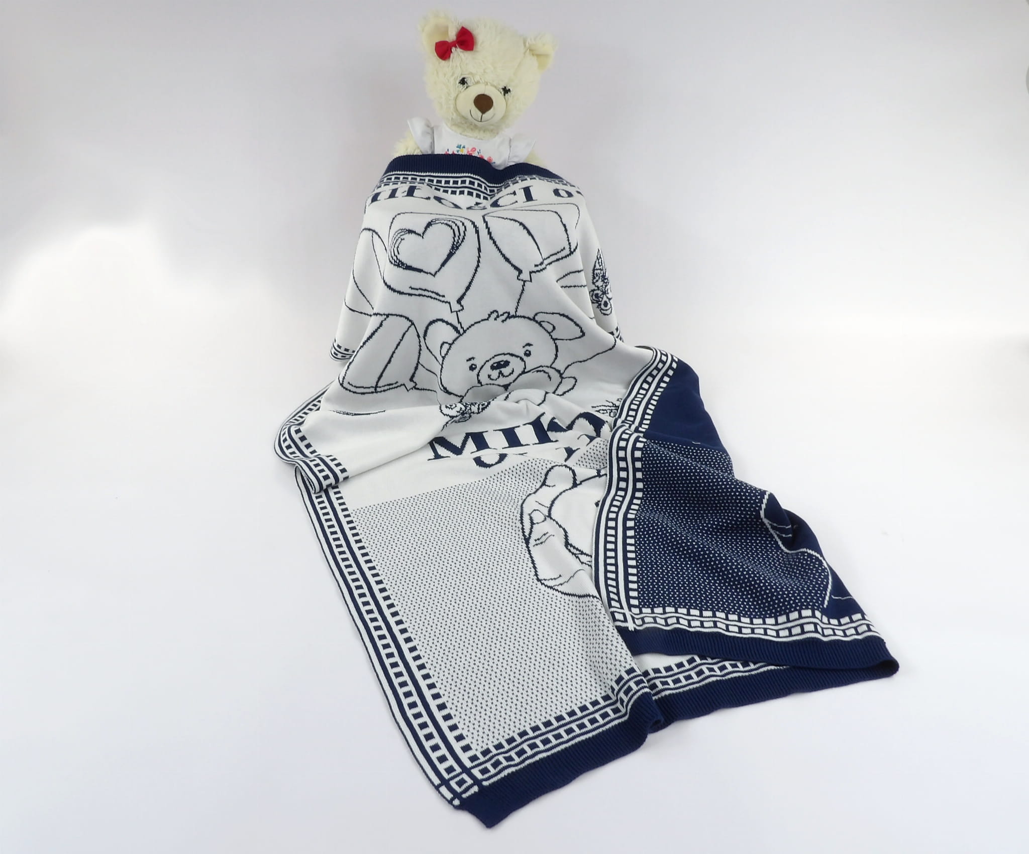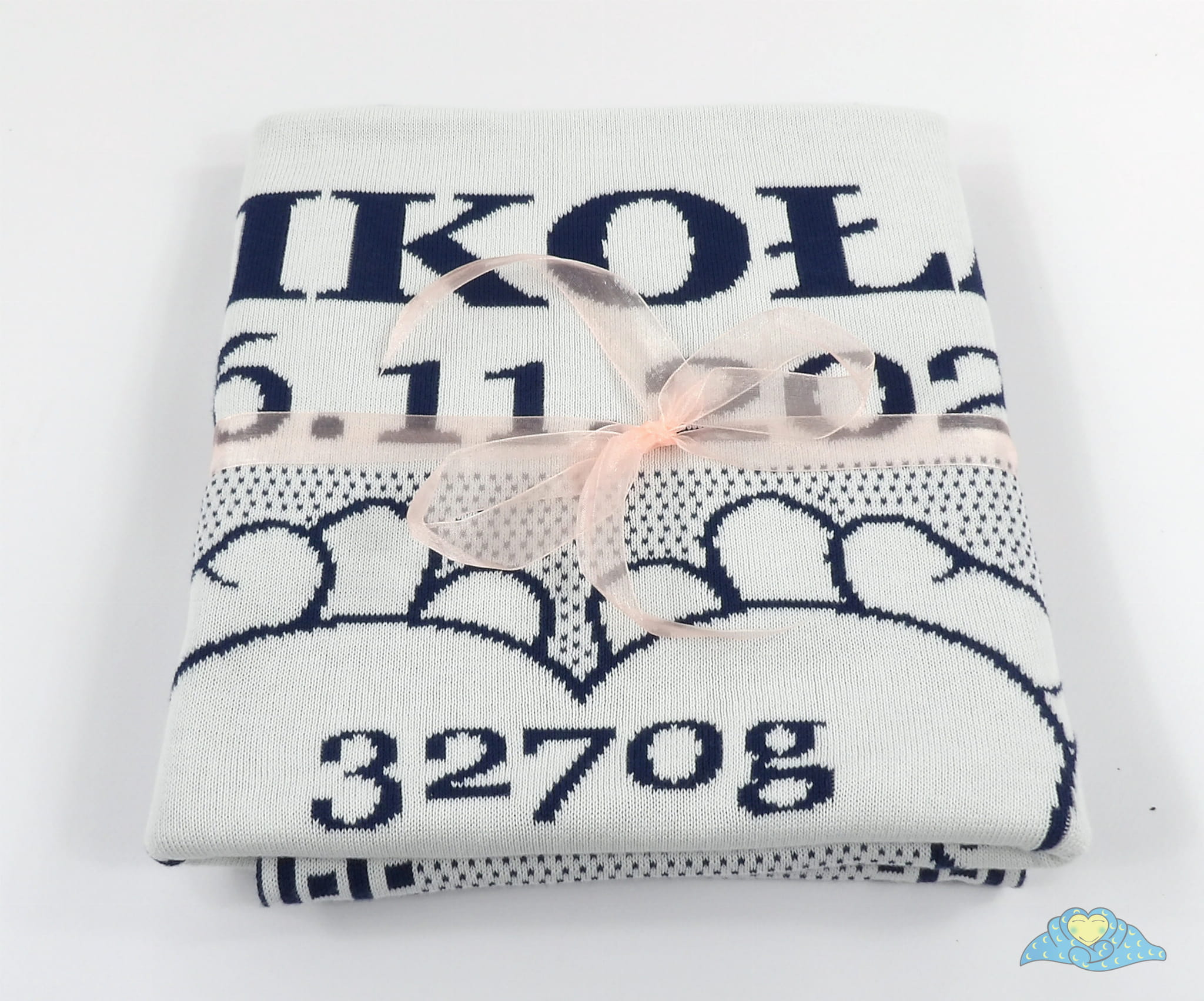 Personalizowany, żakardowy (nie jest to nadruk ani haft) Kocyk Serce z 100% bawełny organicznej.