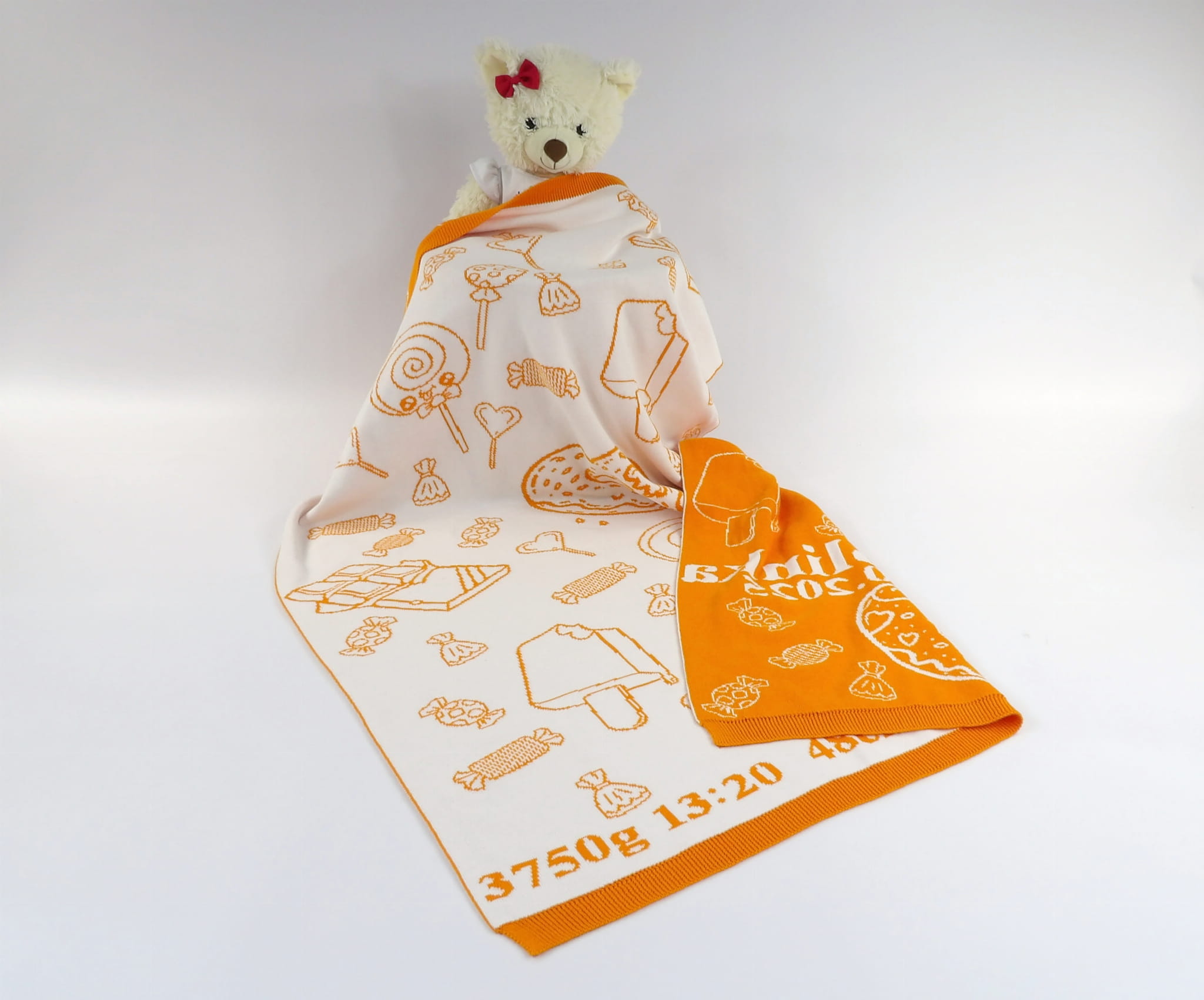 Koc Słodka Kraina Personalizowany to wyjątkowy kocyk z miękkiej dzianiny żakardowej wykonany ze 100% naturalnej bawełny organicznej.