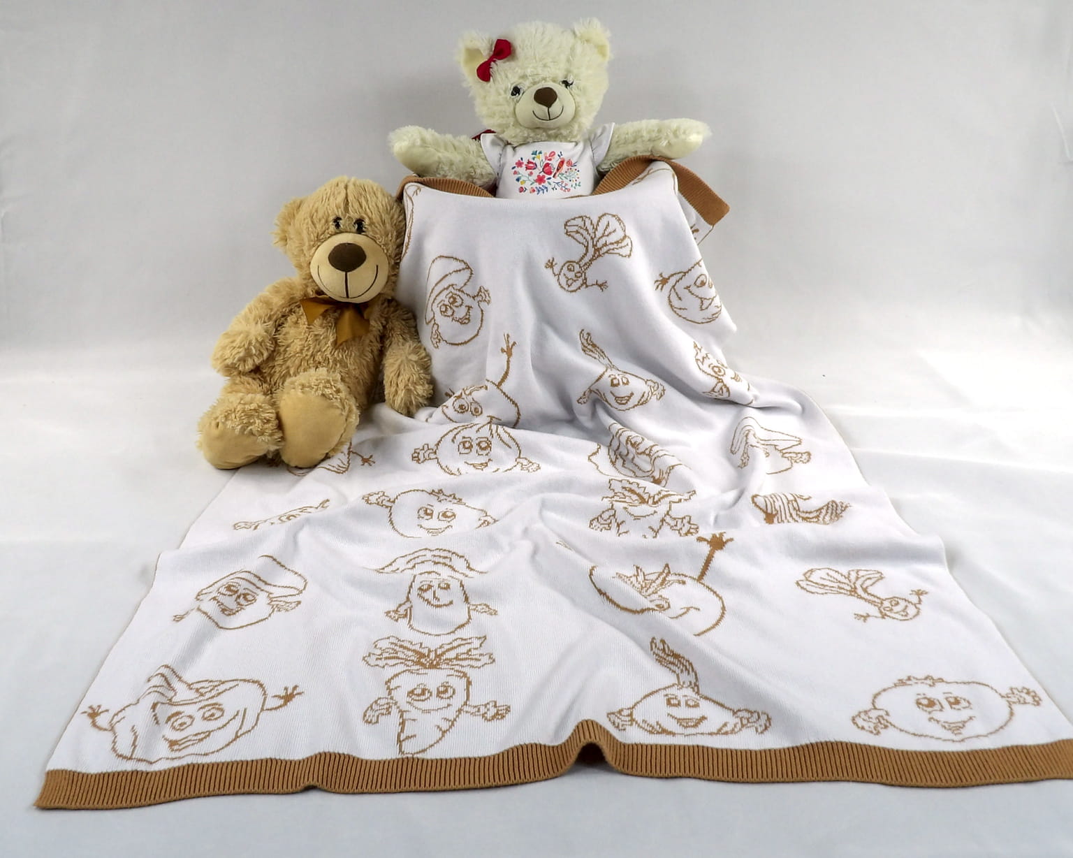 Miękki, żakardowy Kocyk Warzywa z 100% bawełny i certyfikatem OEKO-TEX®.
