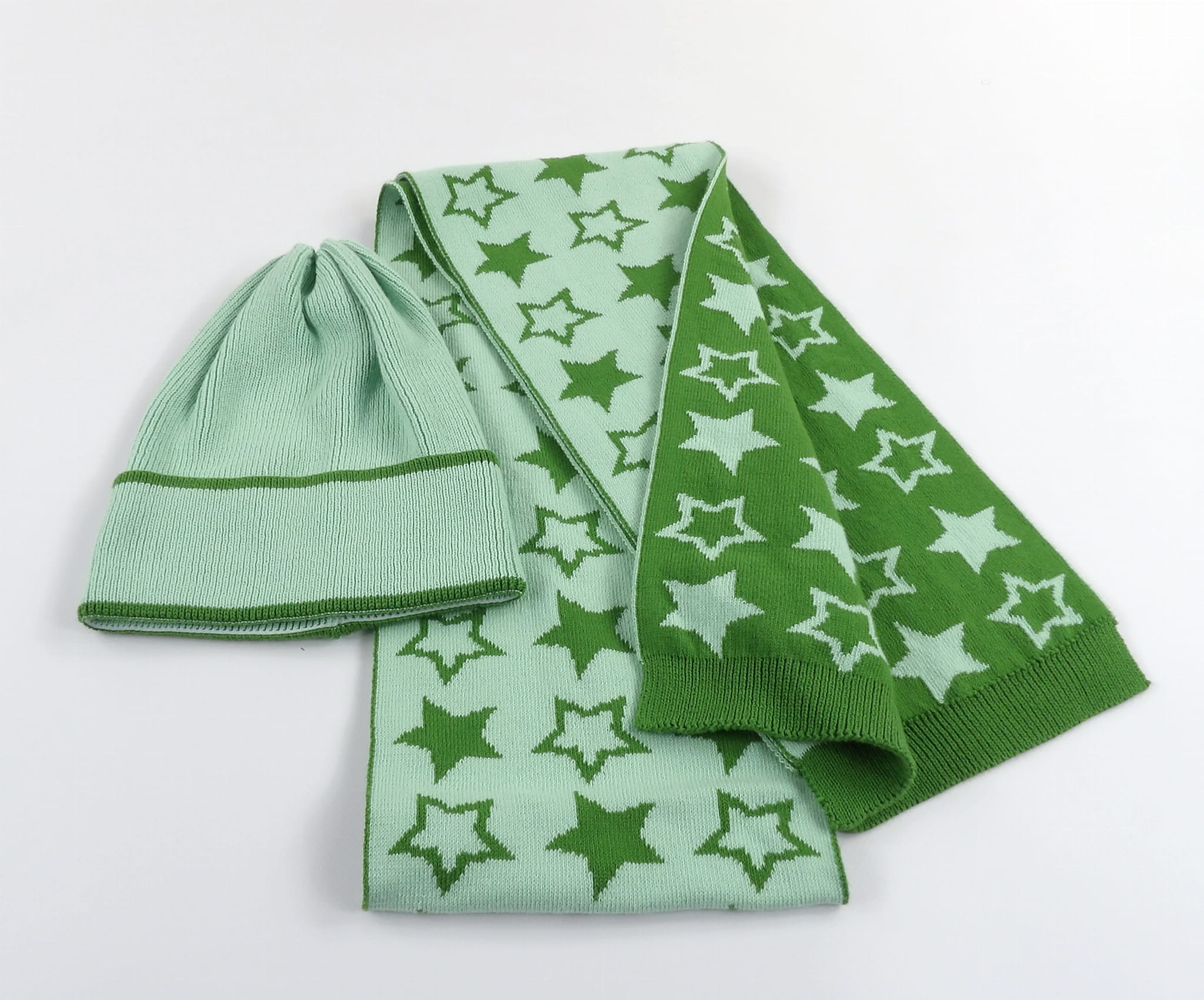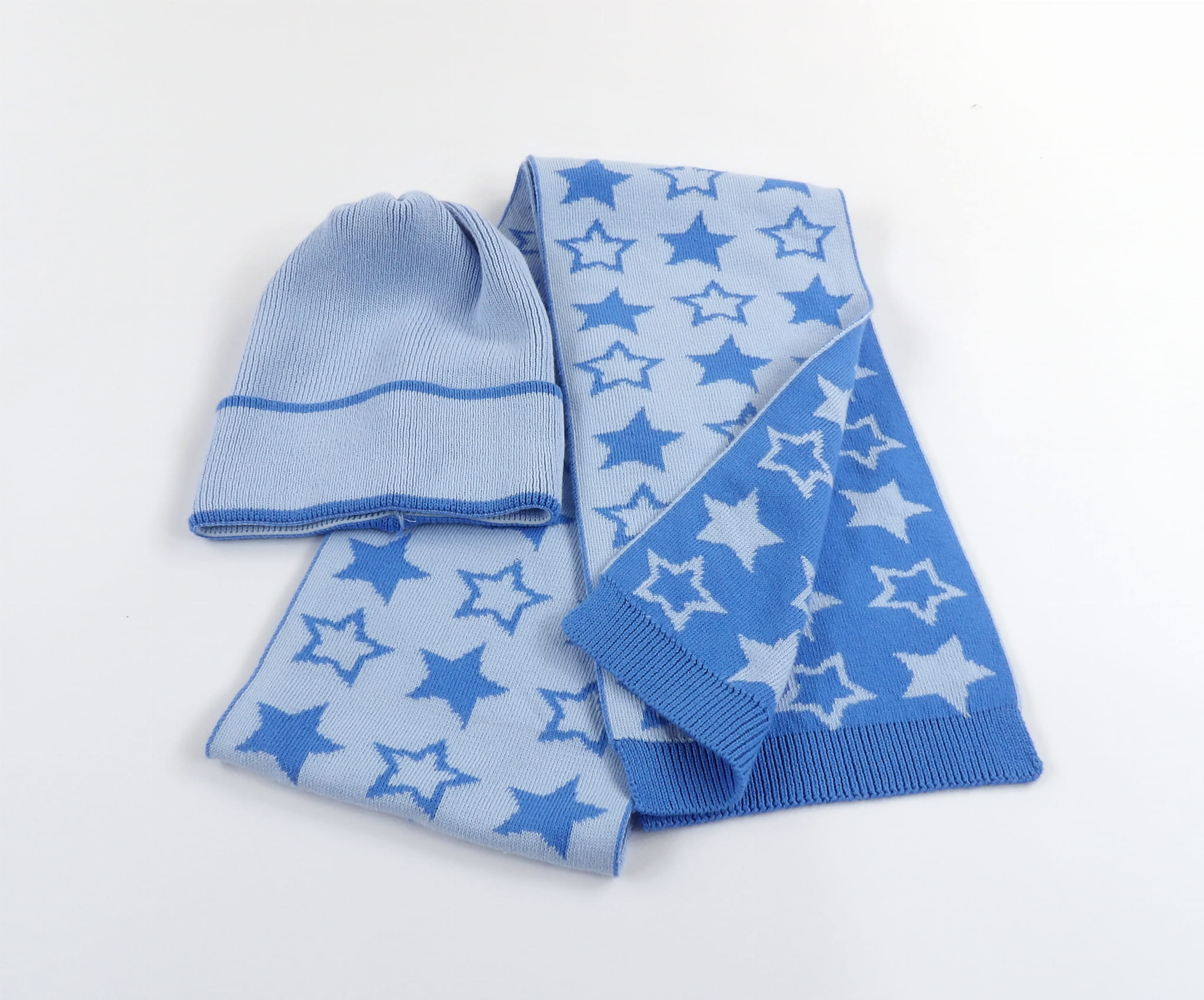 Miękki komlet Czapki z Szalikiem w Gwiazdki z 100% bawełny i certyfikatem OEKO-TEX®.
