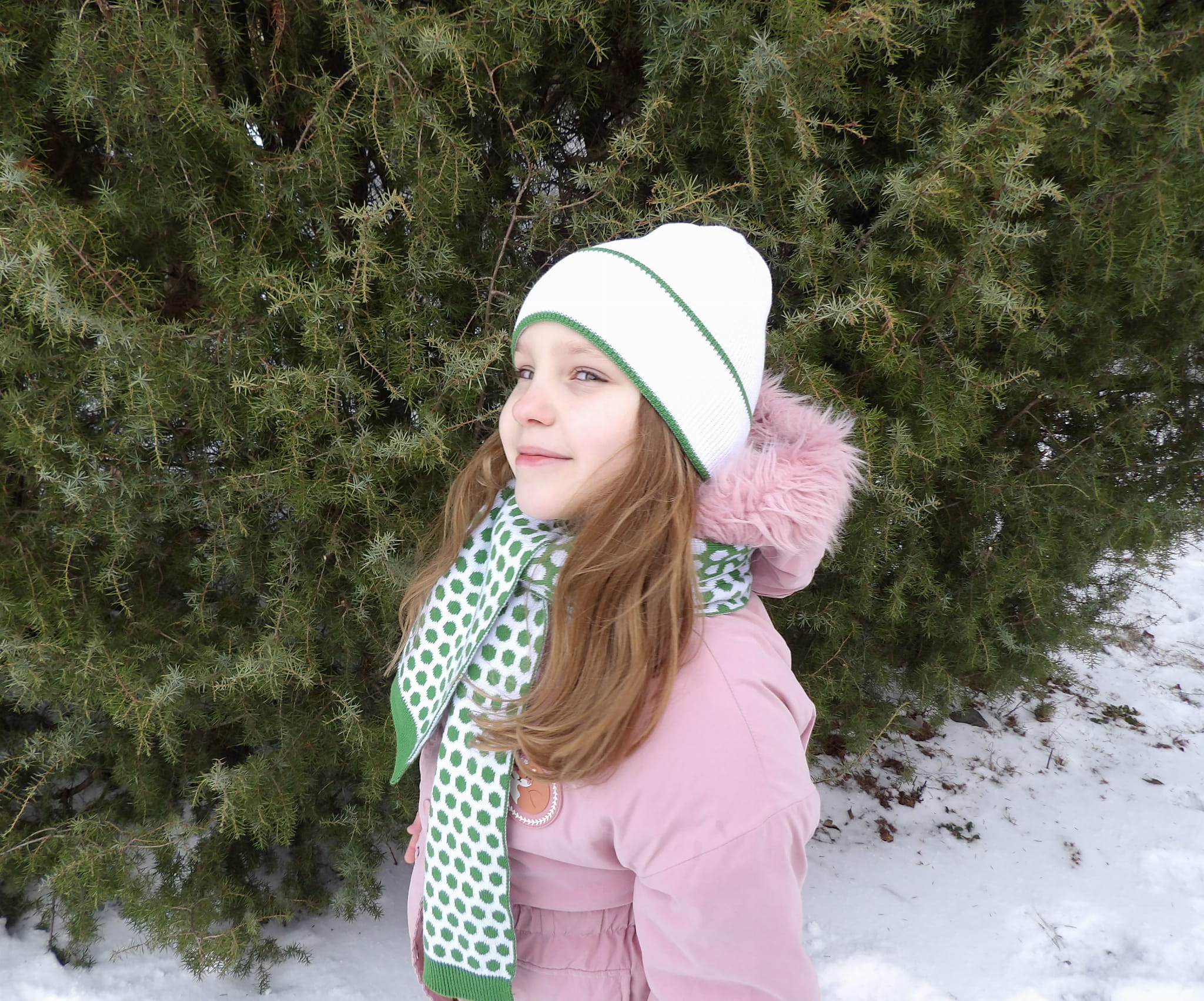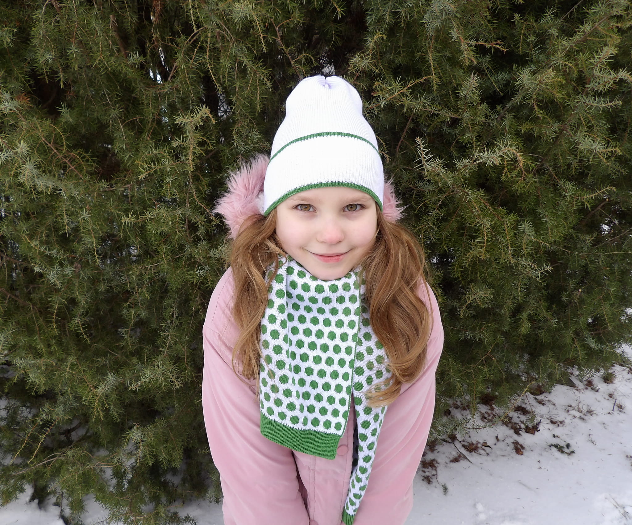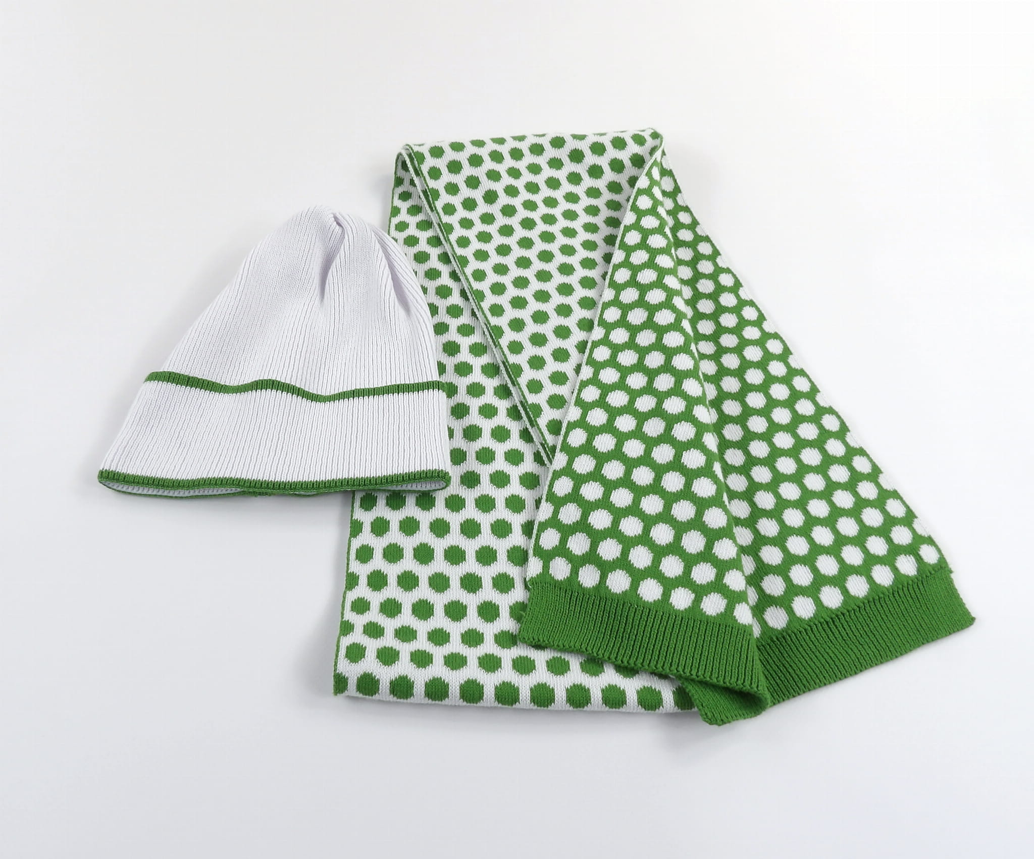 Miękki komlet Czapki z Szalikiem w Kropki z 100% bawełny i certyfikatem OEKO-TEX®.