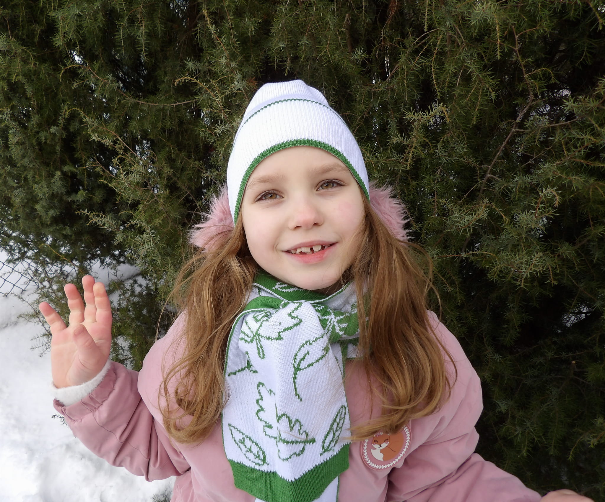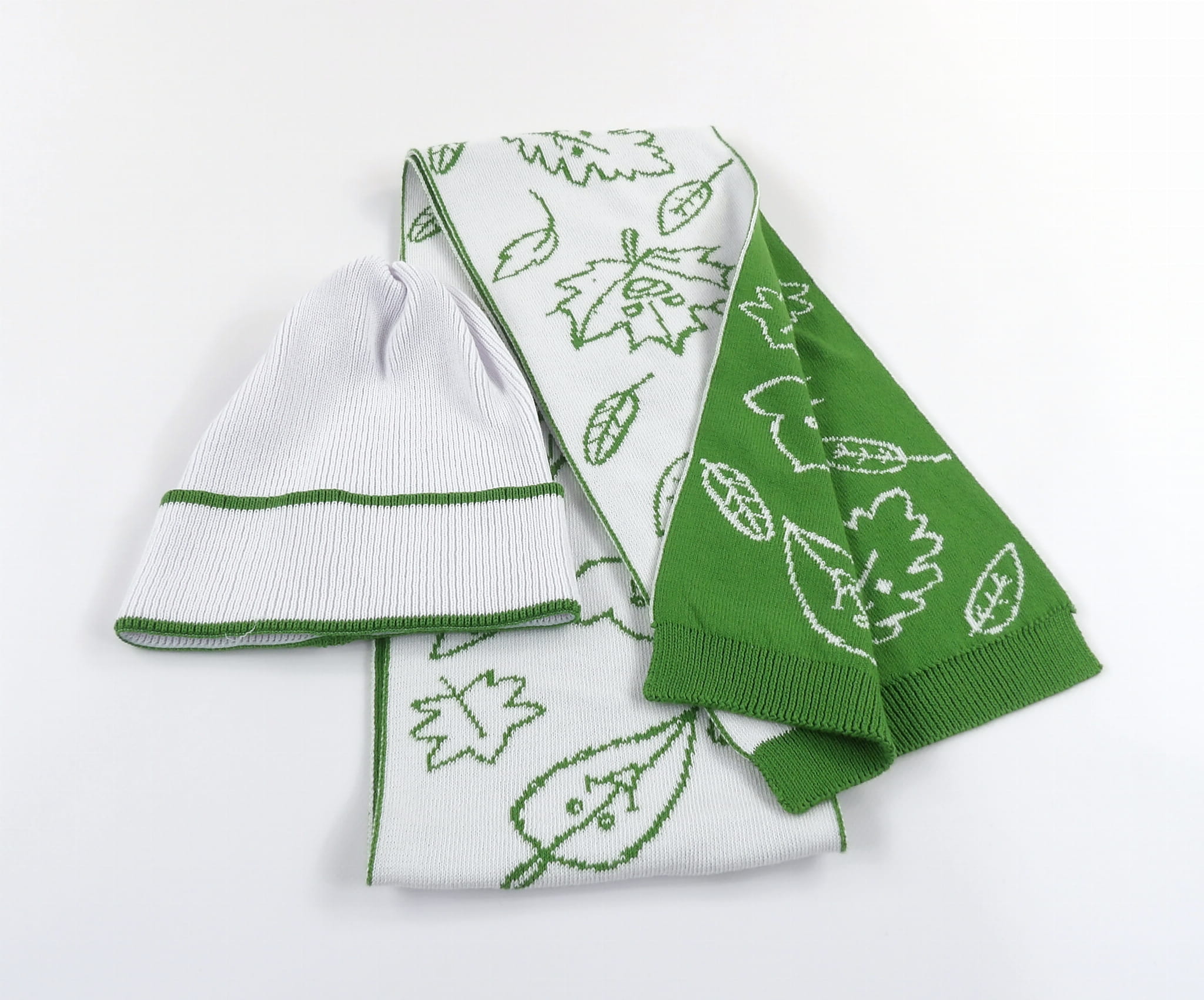 Miękki komlet Czapki z Szalikiem w Listki z 100% bawełny i certyfikatem OEKO-TEX®.