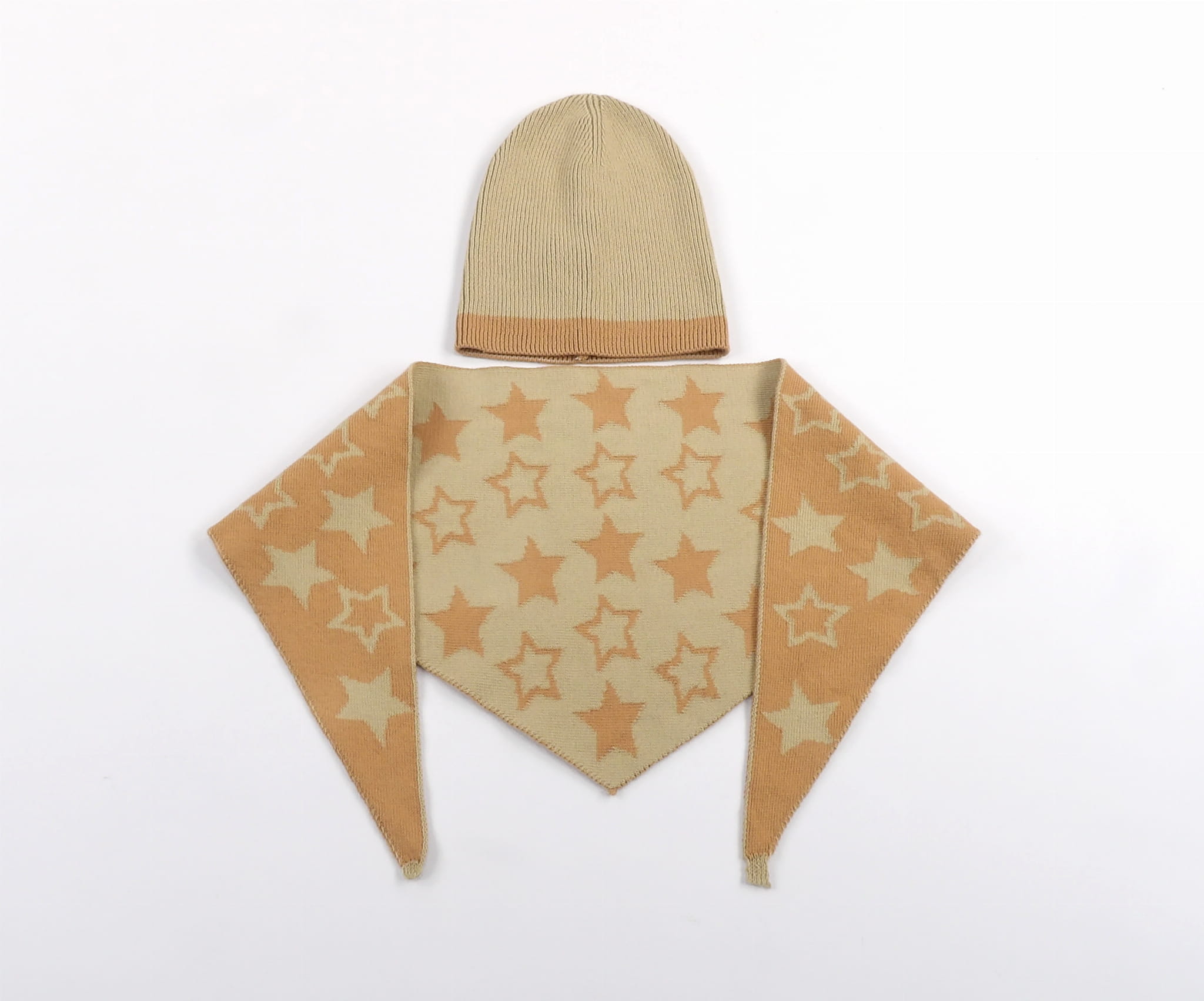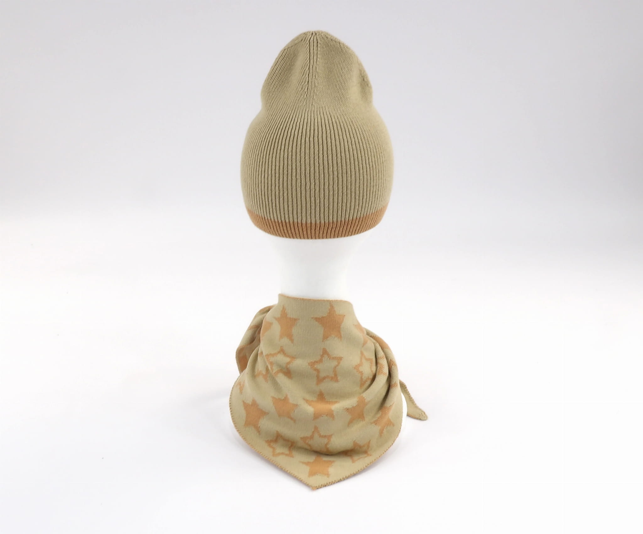 Miękki Komplet Czapki z Chustką w Gwiazdki z 100% bawełny i certyfikatem OEKO-TEX®.