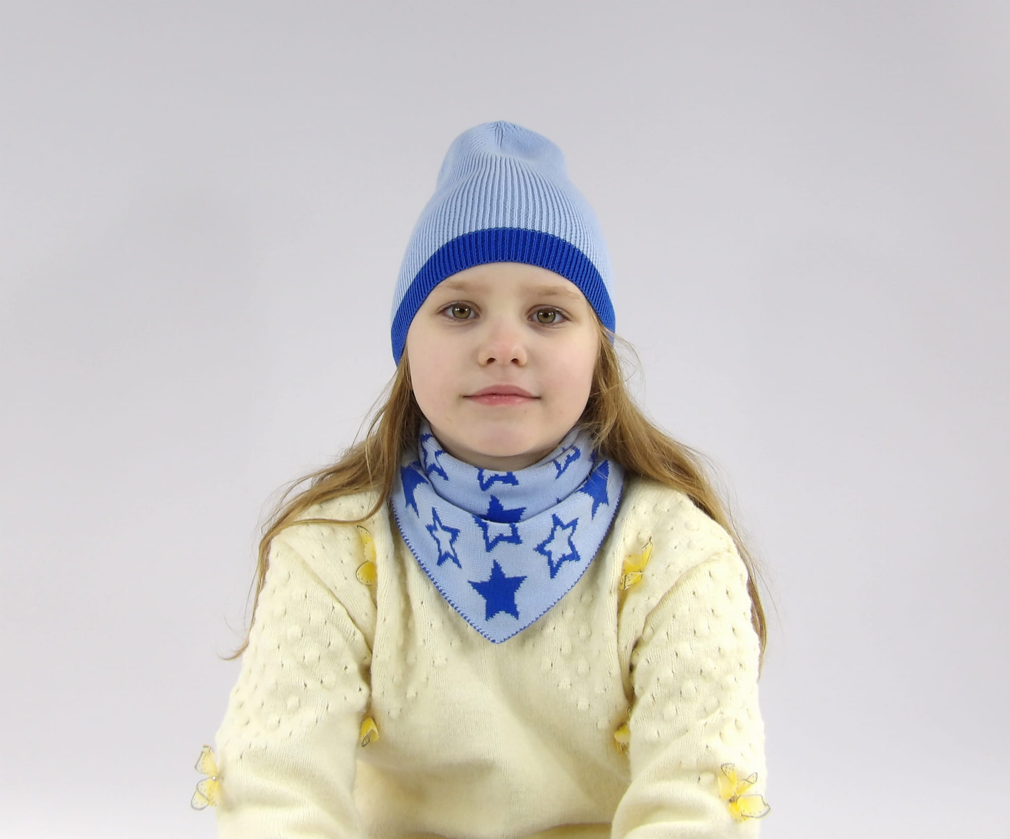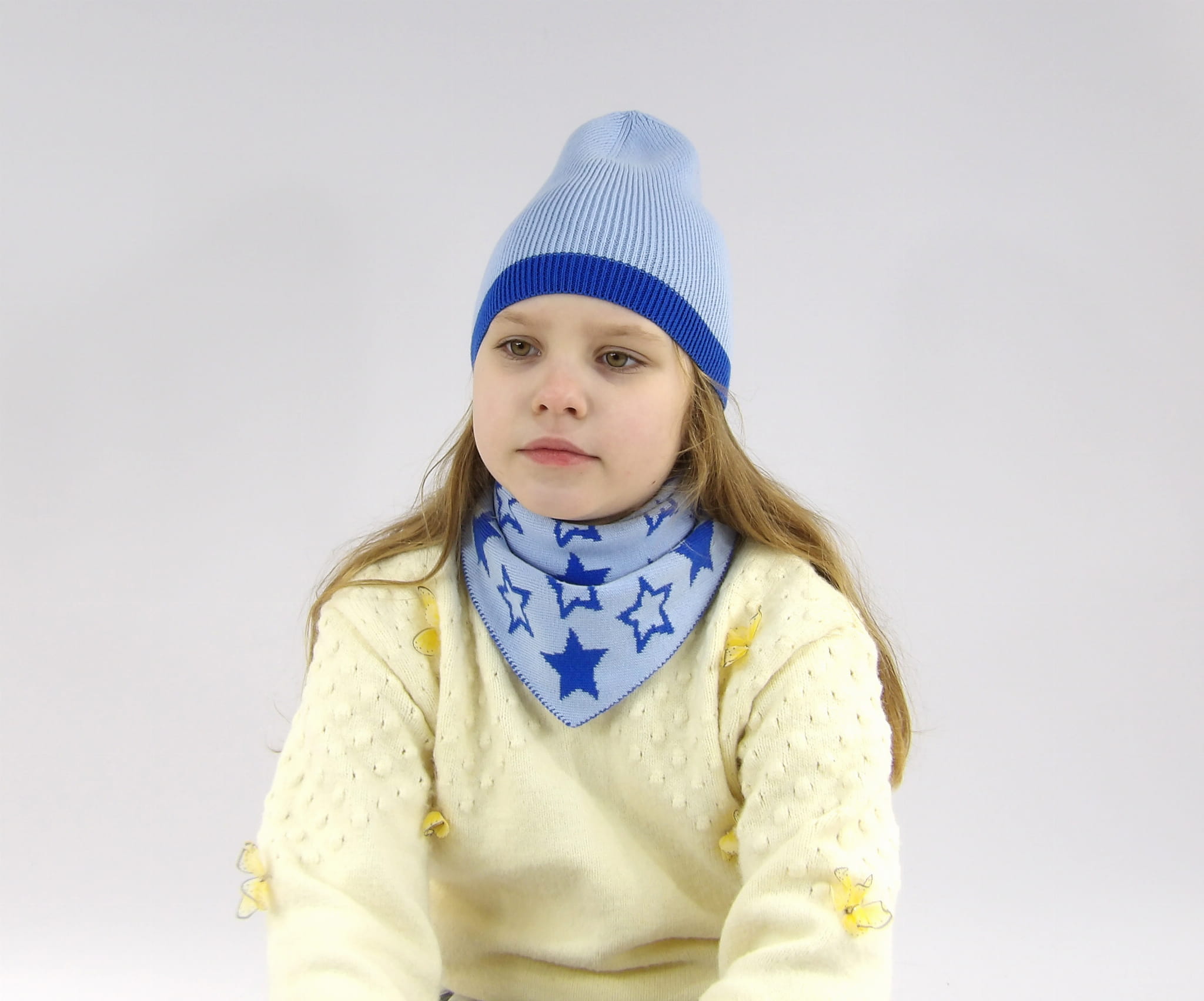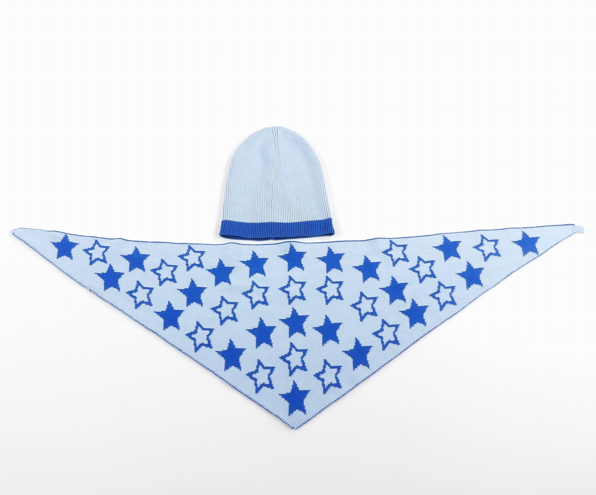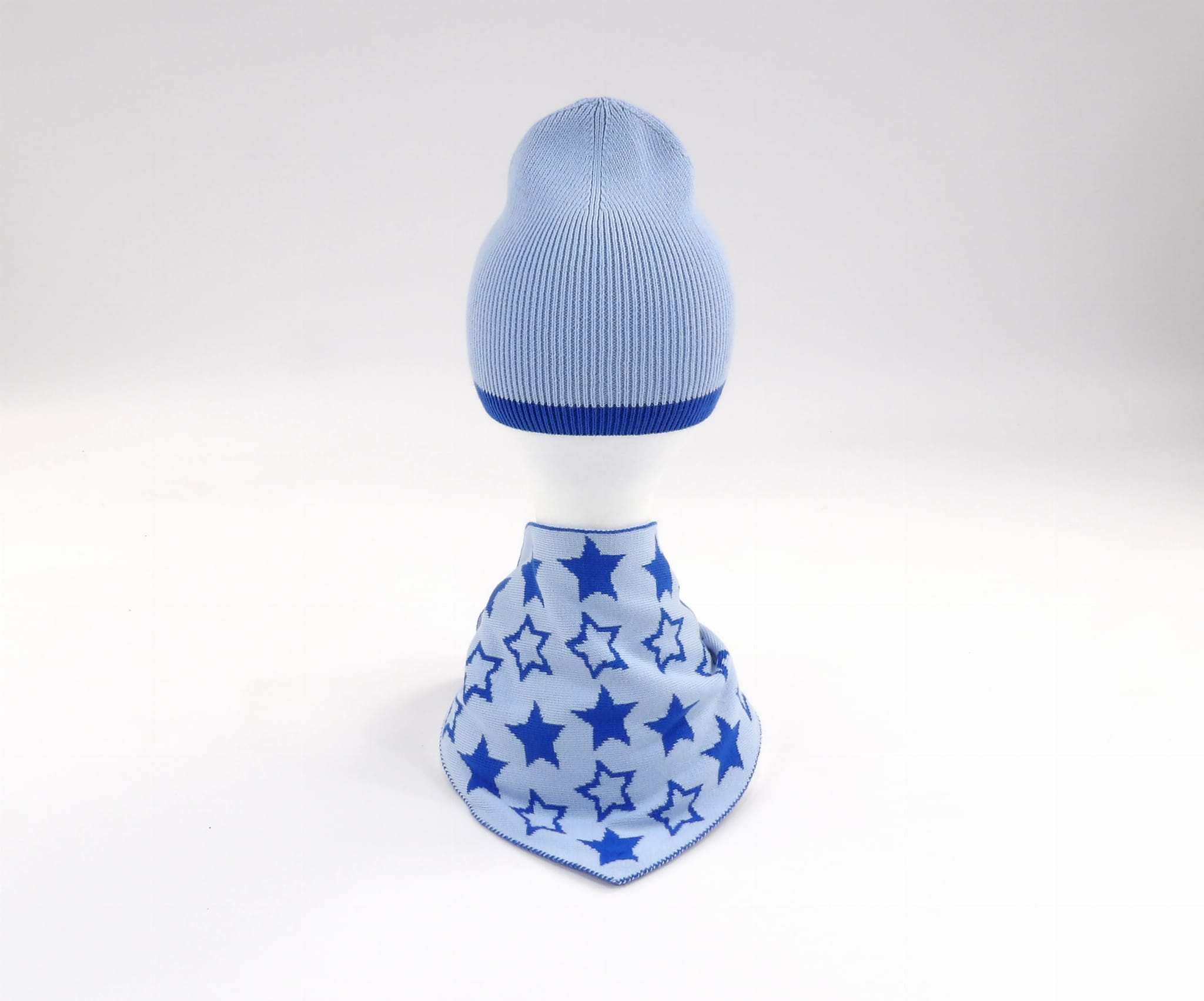 Miękki Komplet Czapki z Chustką w Gwiazdki z 100% bawełny i certyfikatem OEKO-TEX®.
