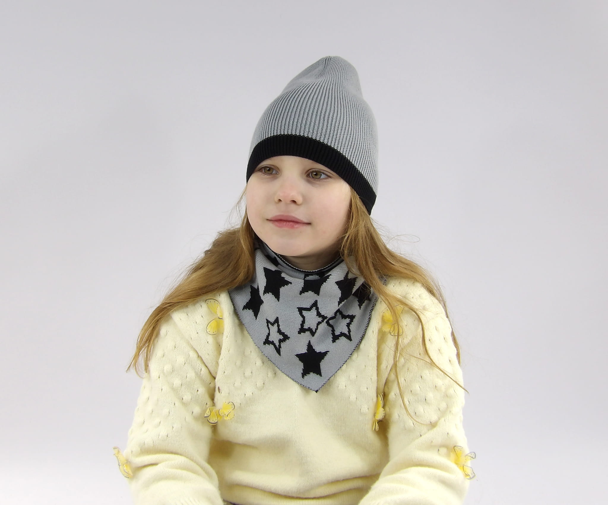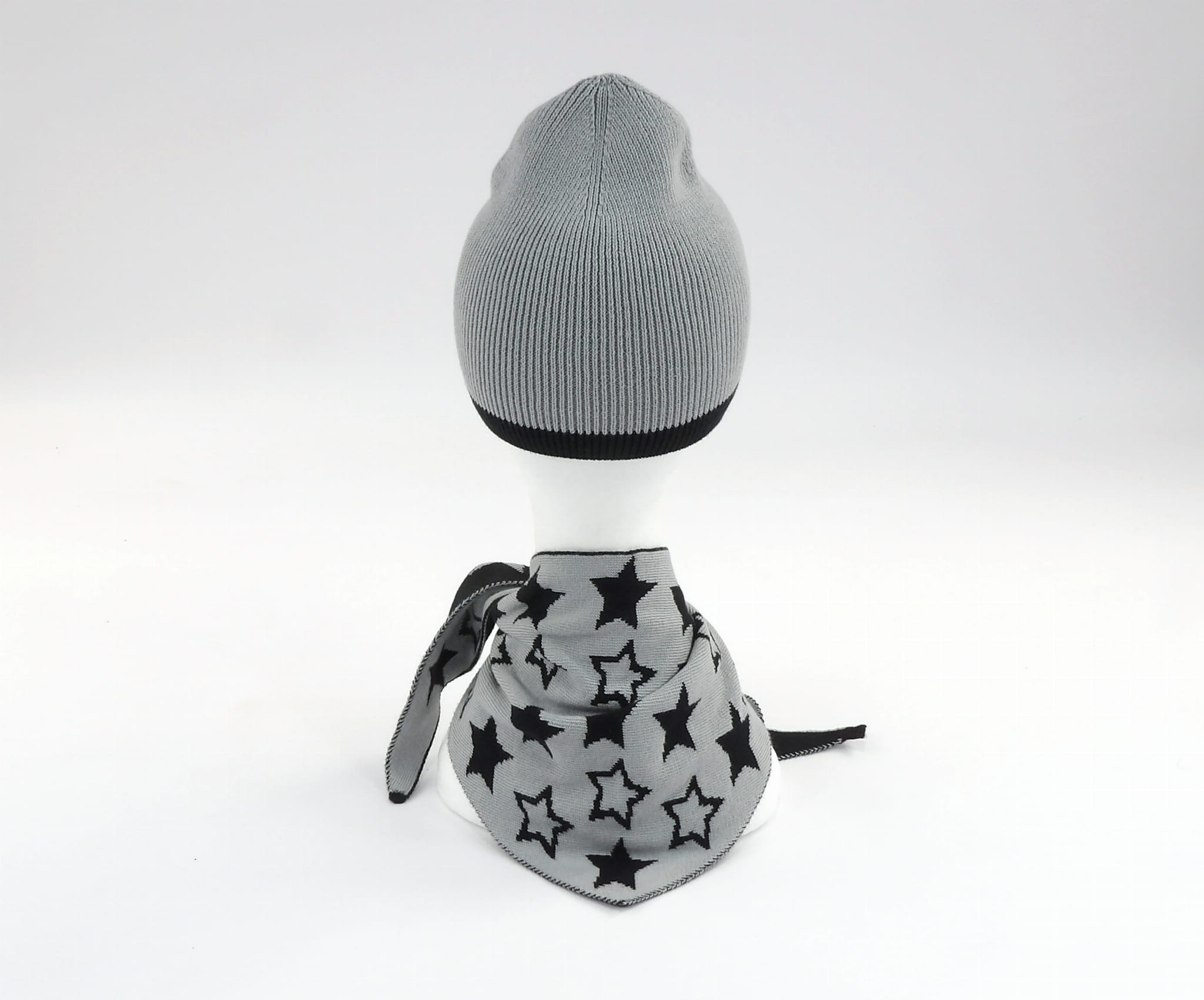 Miękki Komplet Czapki z Chustką w Gwiazdki z 100% bawełny i certyfikatem OEKO-TEX®.