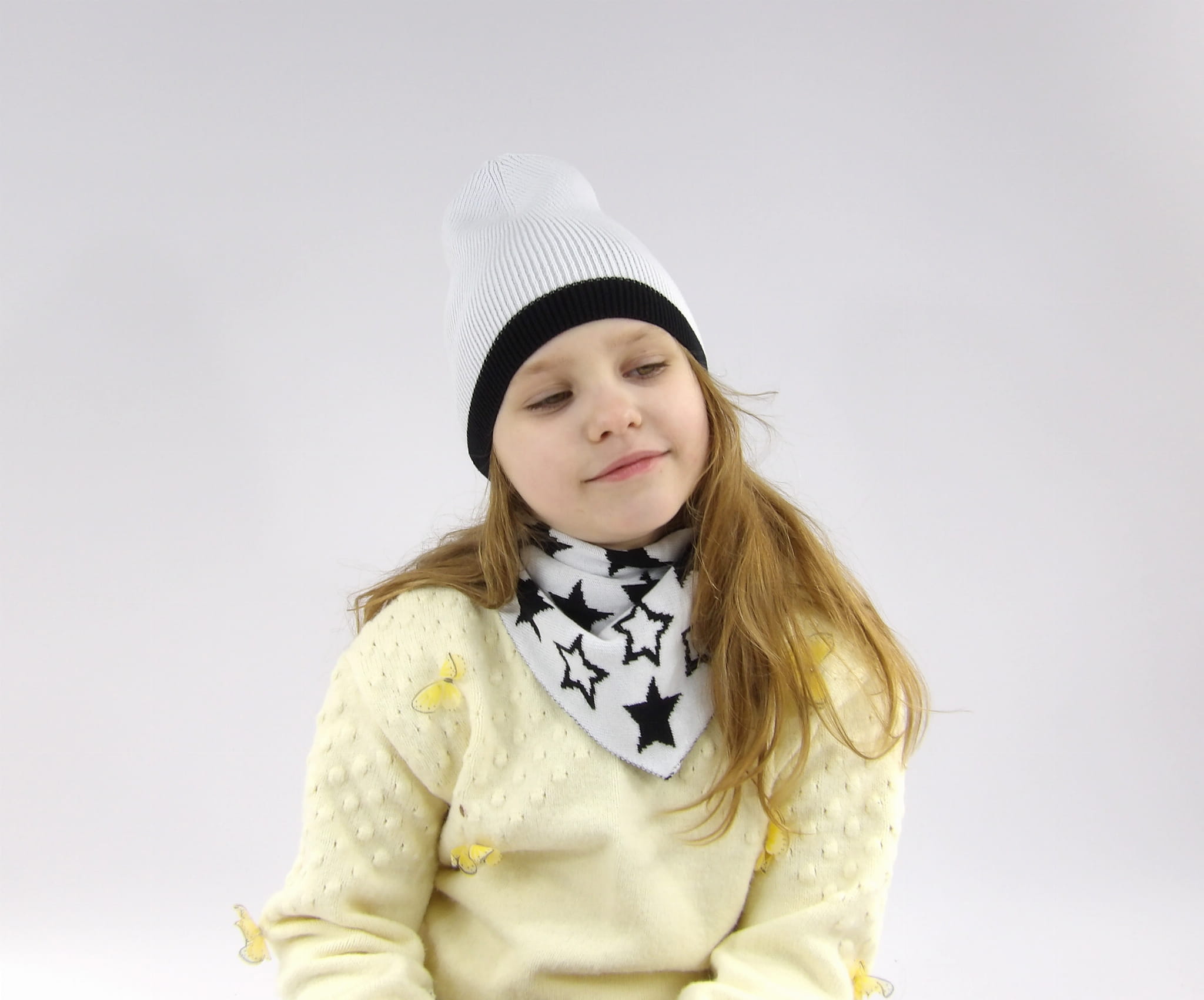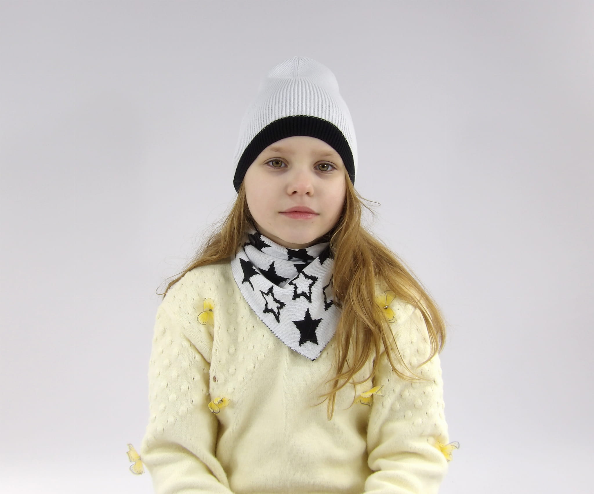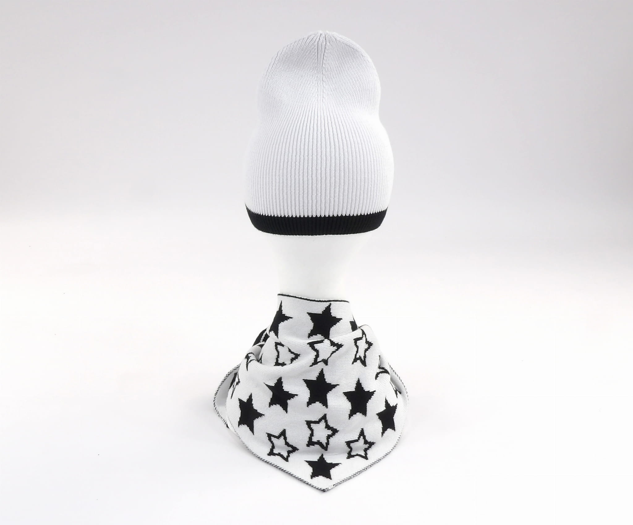 Miękki Komplet Czapki z Chustką w Gwiazdki z 100% bawełny i certyfikatem OEKO-TEX®.