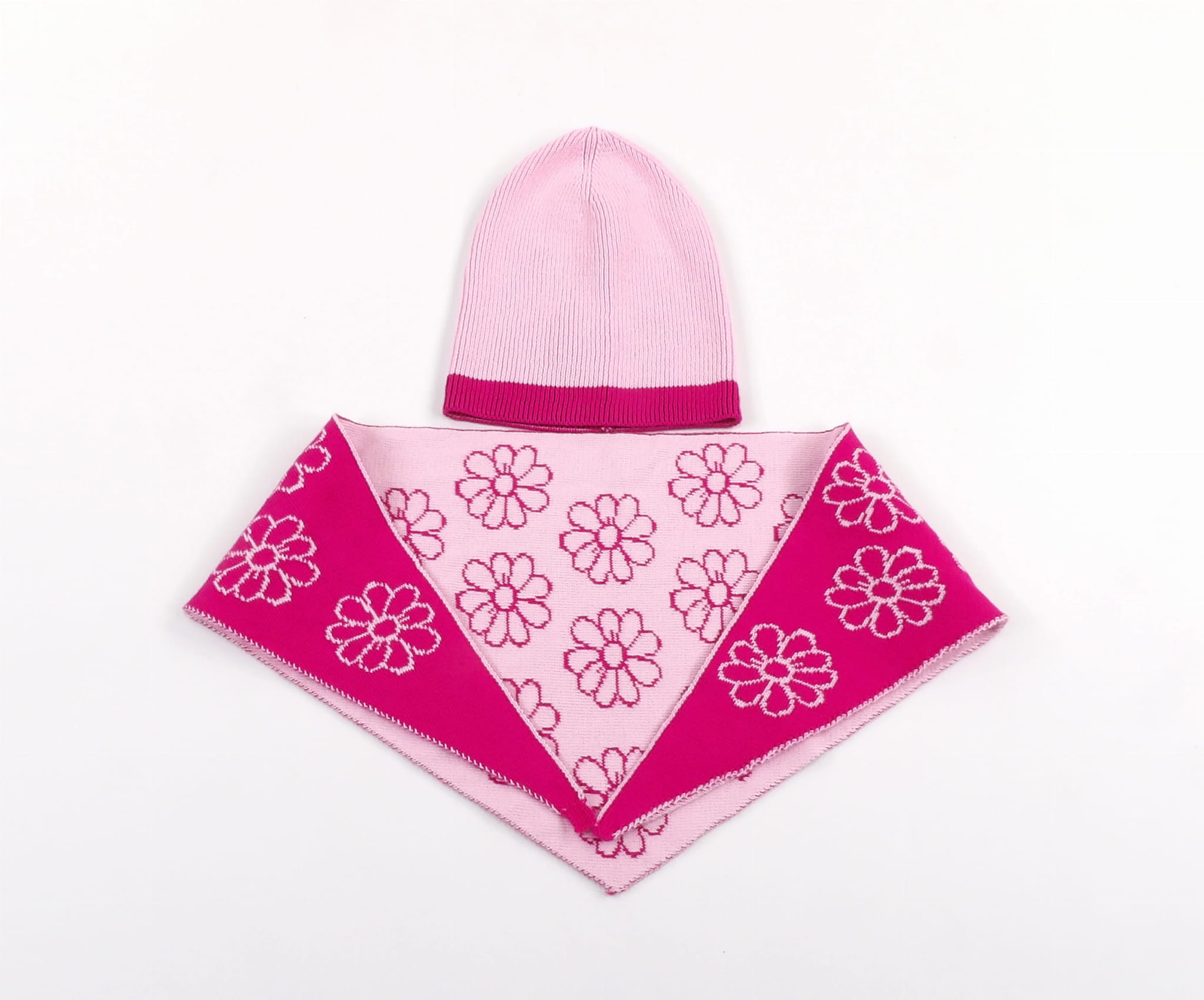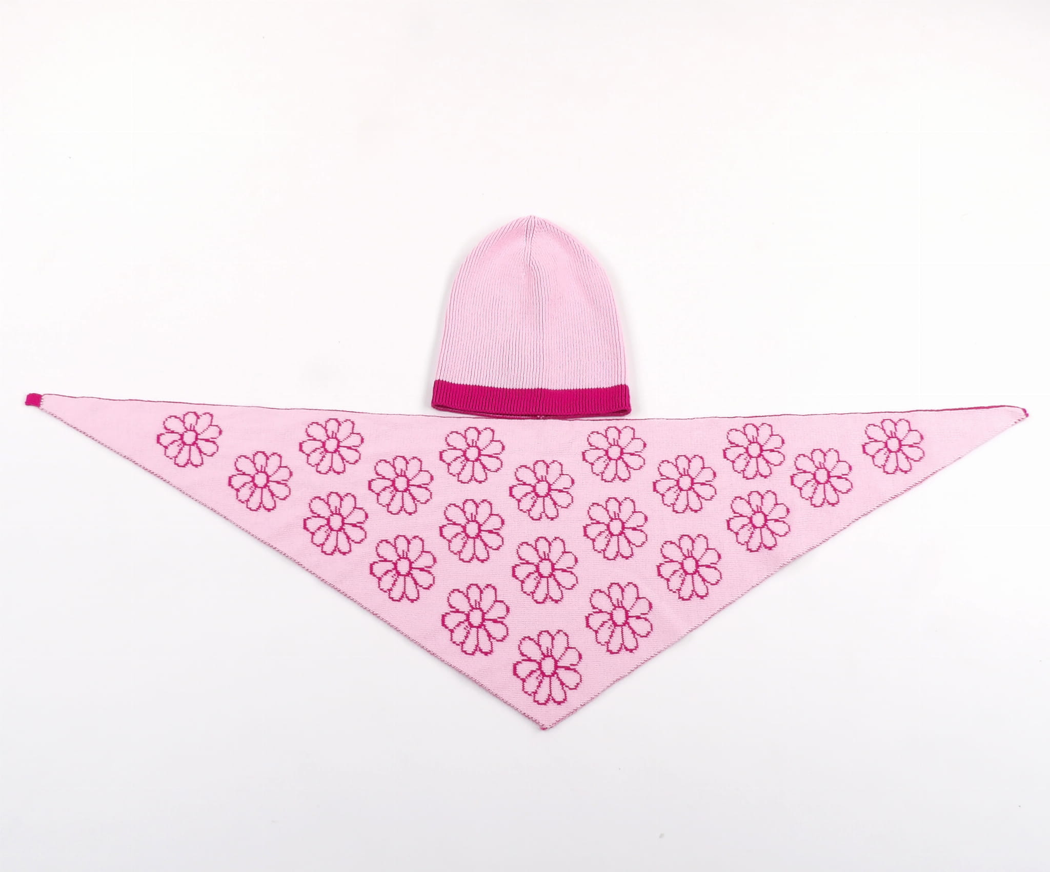 Miękki Komplet Czapki z Chustką w Kwiatki z 100% bawełny i certyfikatem OEKO-TEX®.