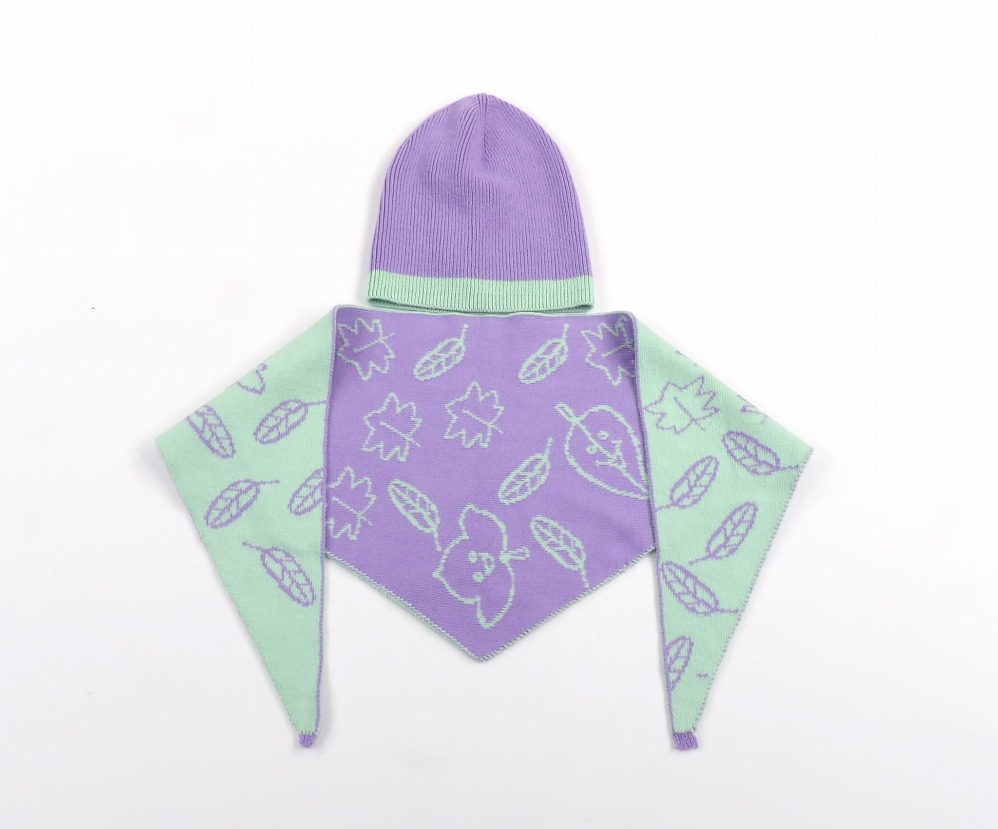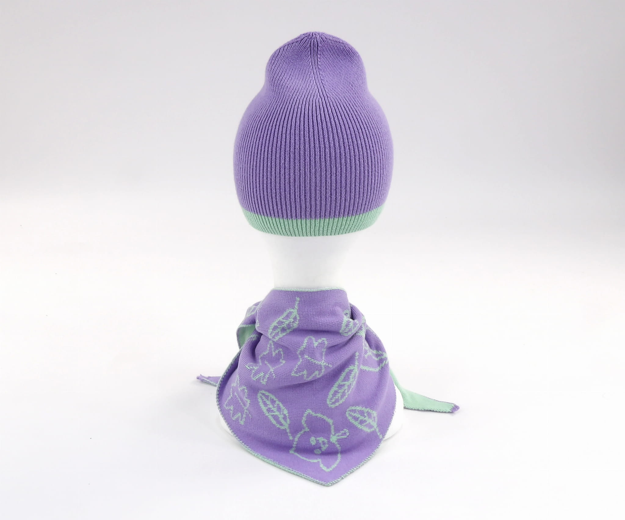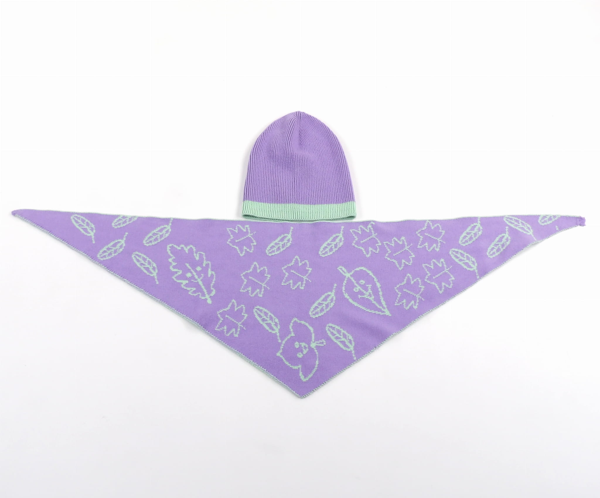 Miękki Komplet Czapki z Chustką w Listki z 100% bawełny i certyfikatem OEKO-TEX®.