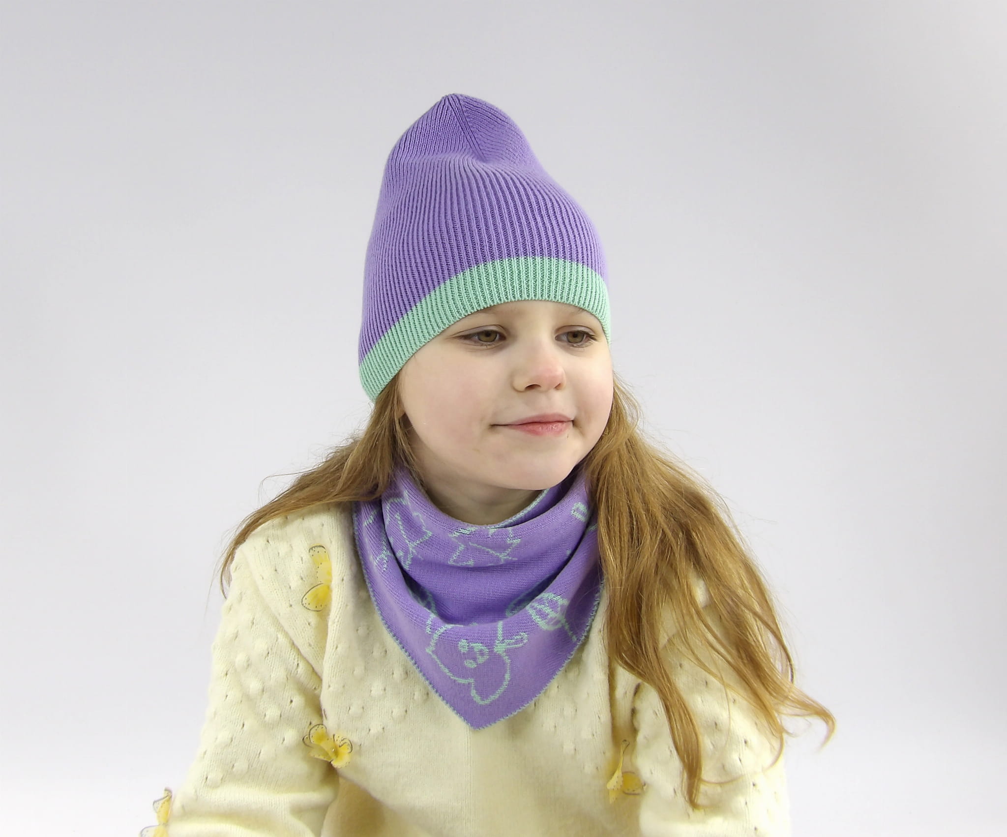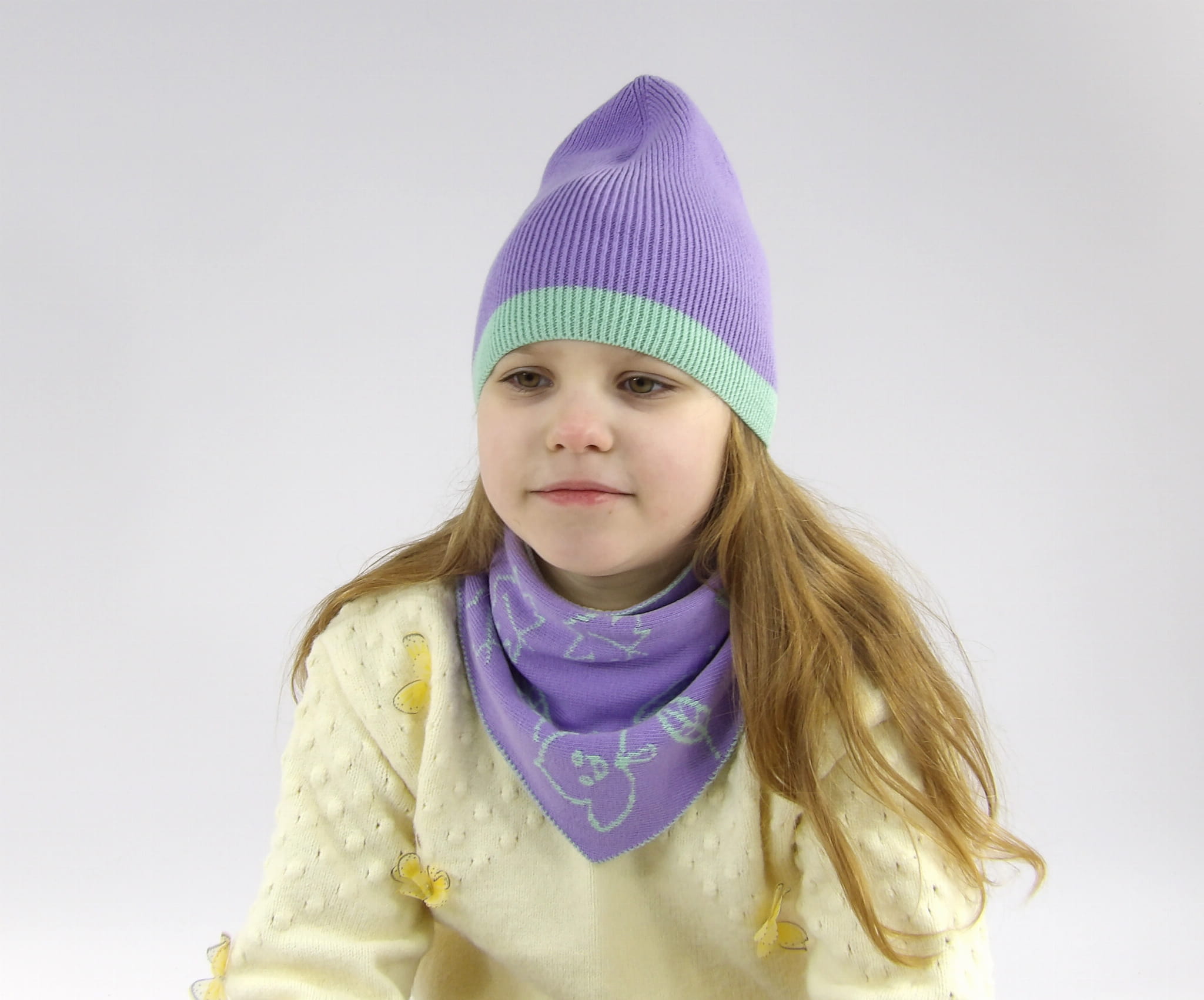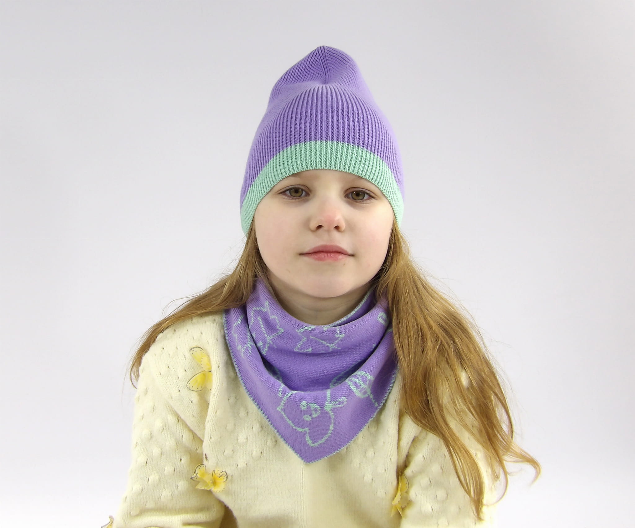 Miękki Komplet Czapki z Chustką w Listki z 100% bawełny i certyfikatem OEKO-TEX®.