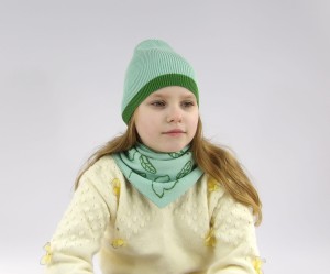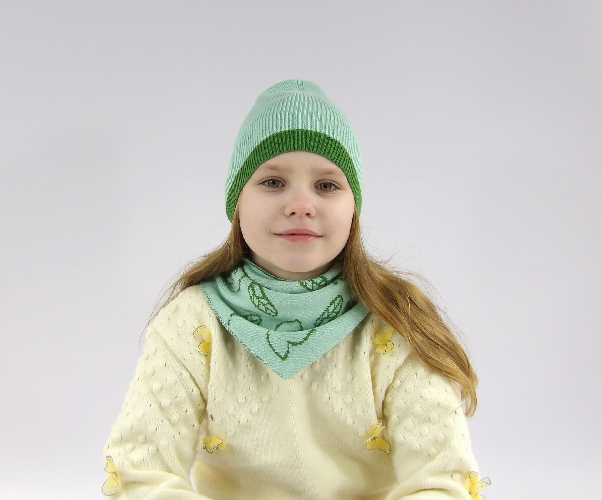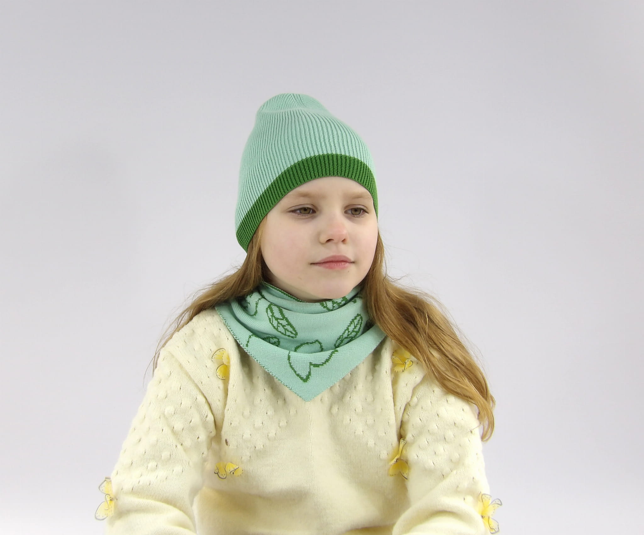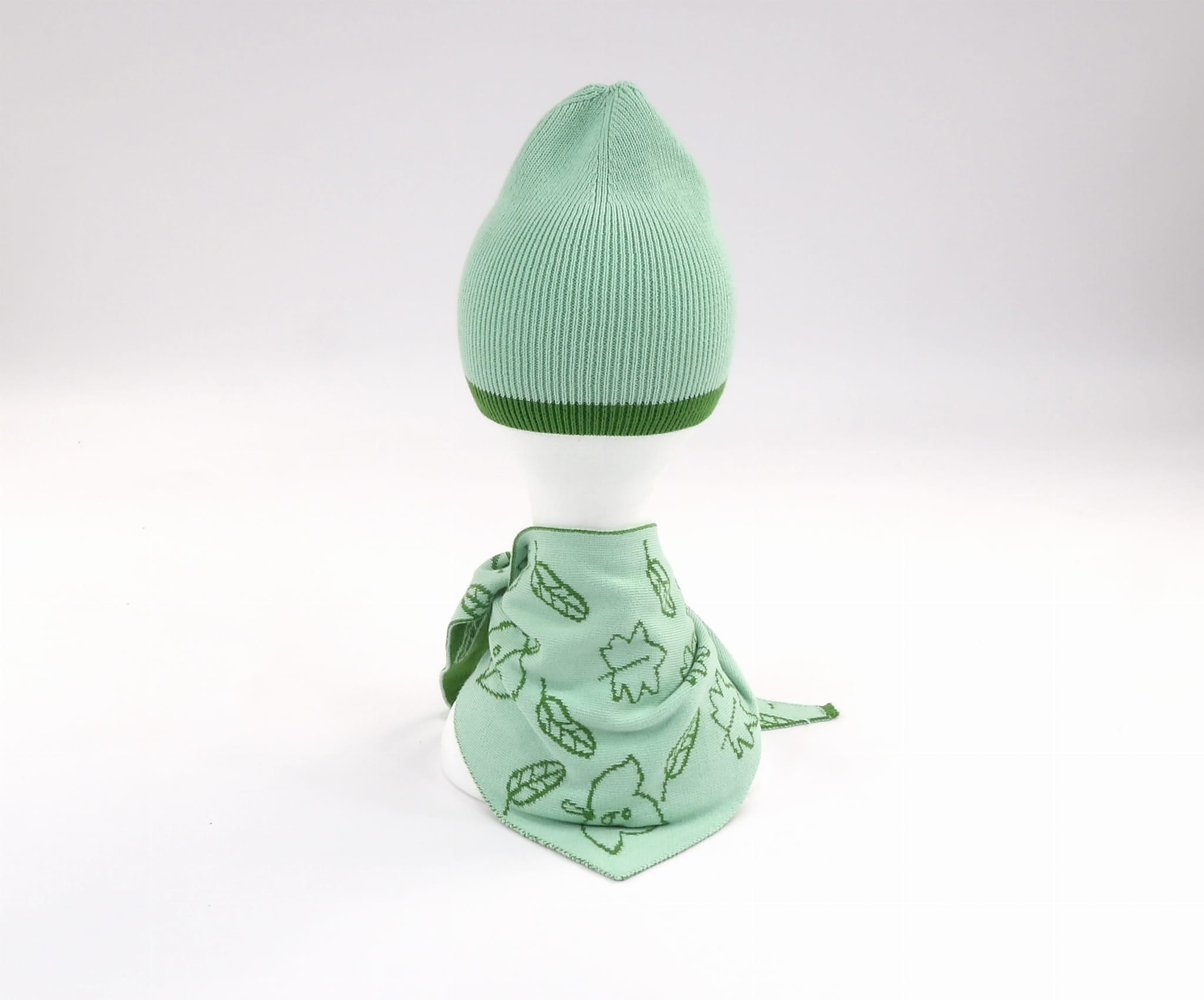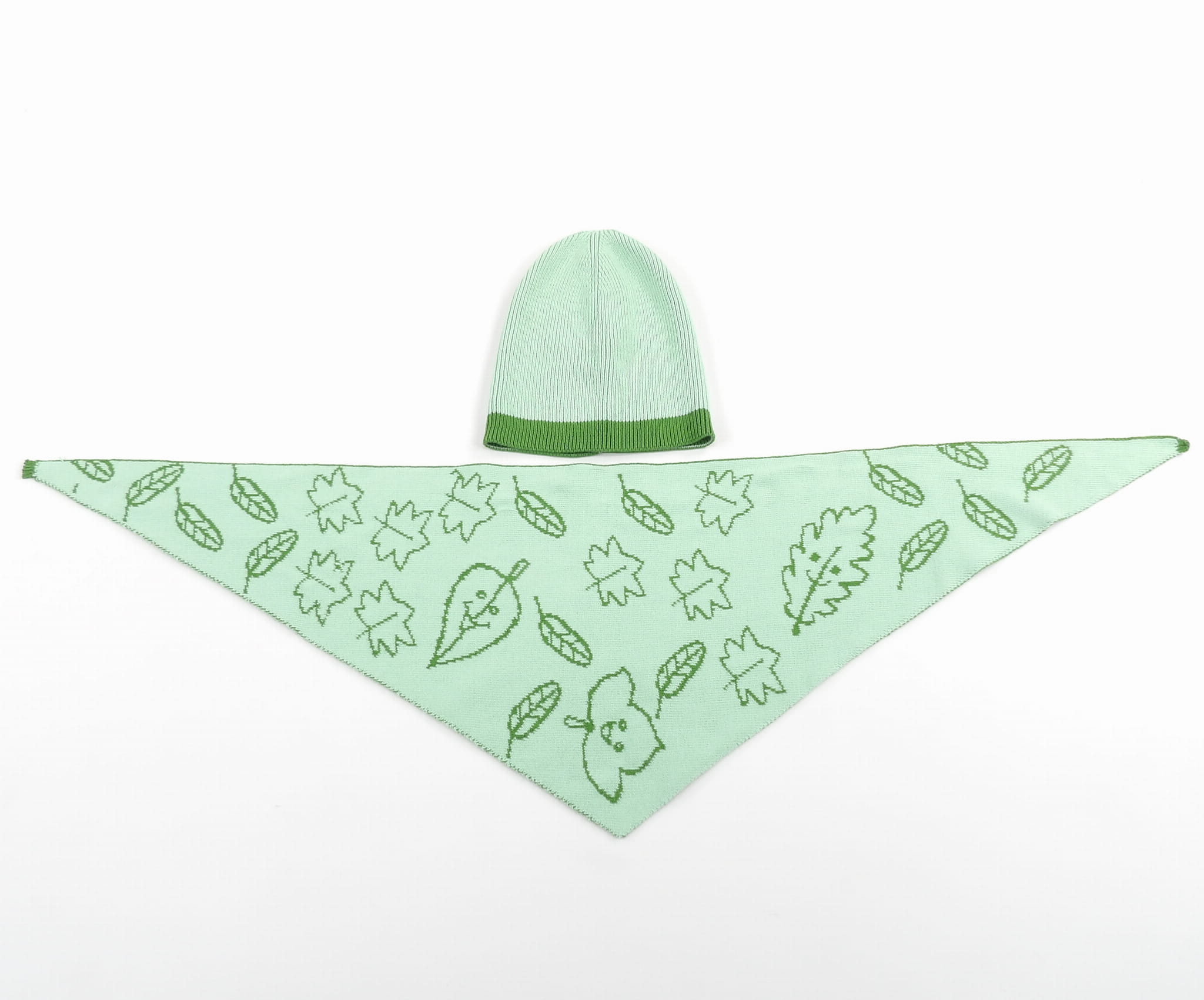Miękki Komplet Czapki z Chustką w Listki z 100% bawełny i certyfikatem OEKO-TEX®.