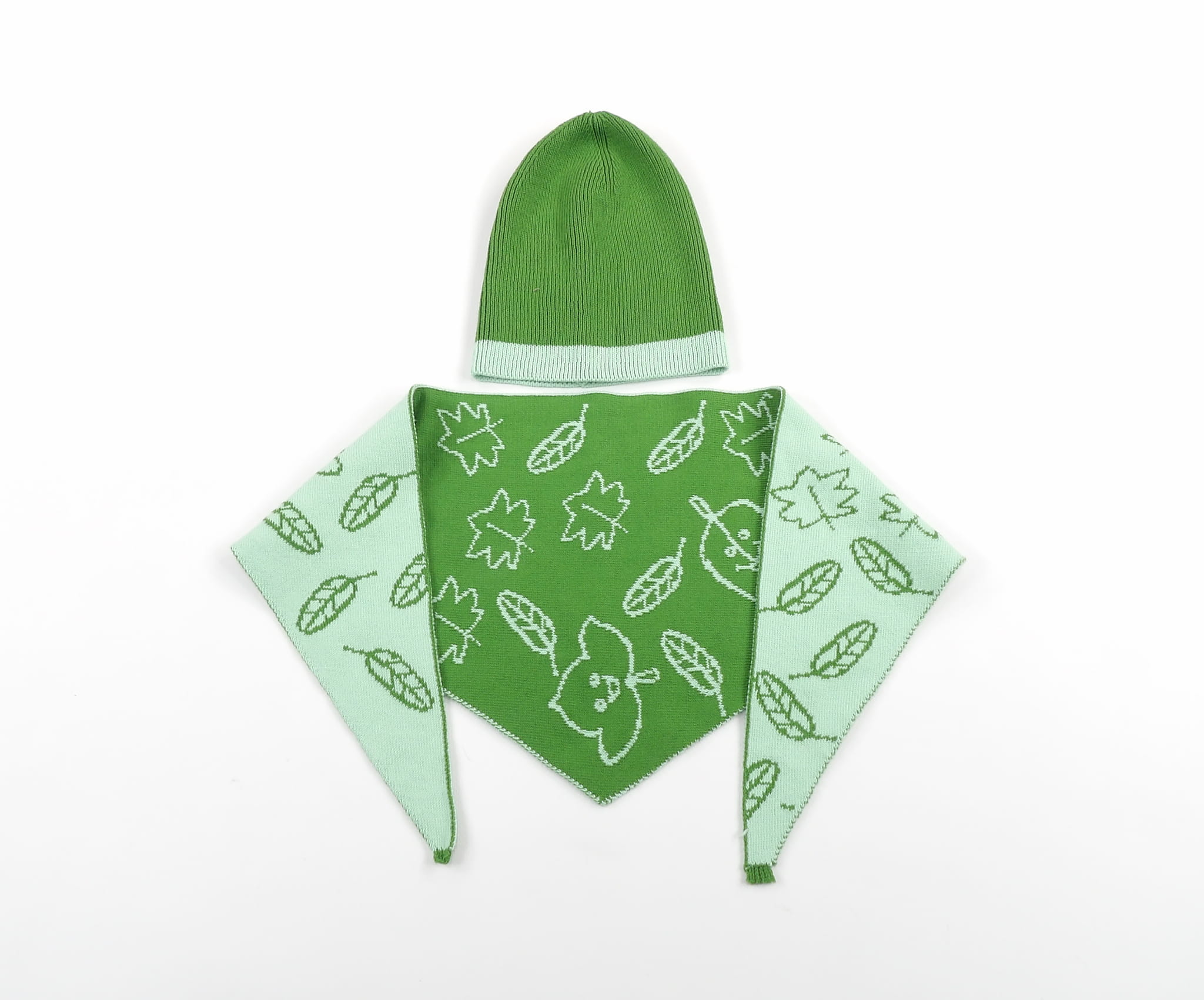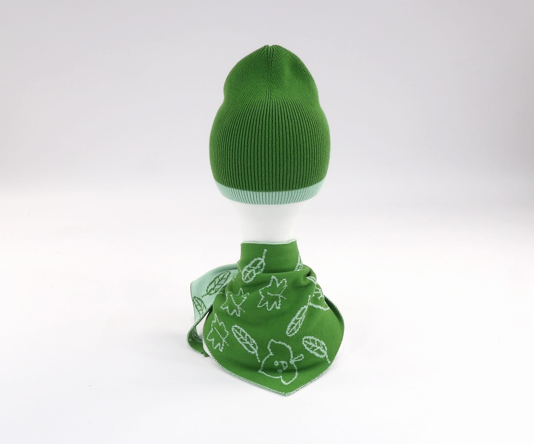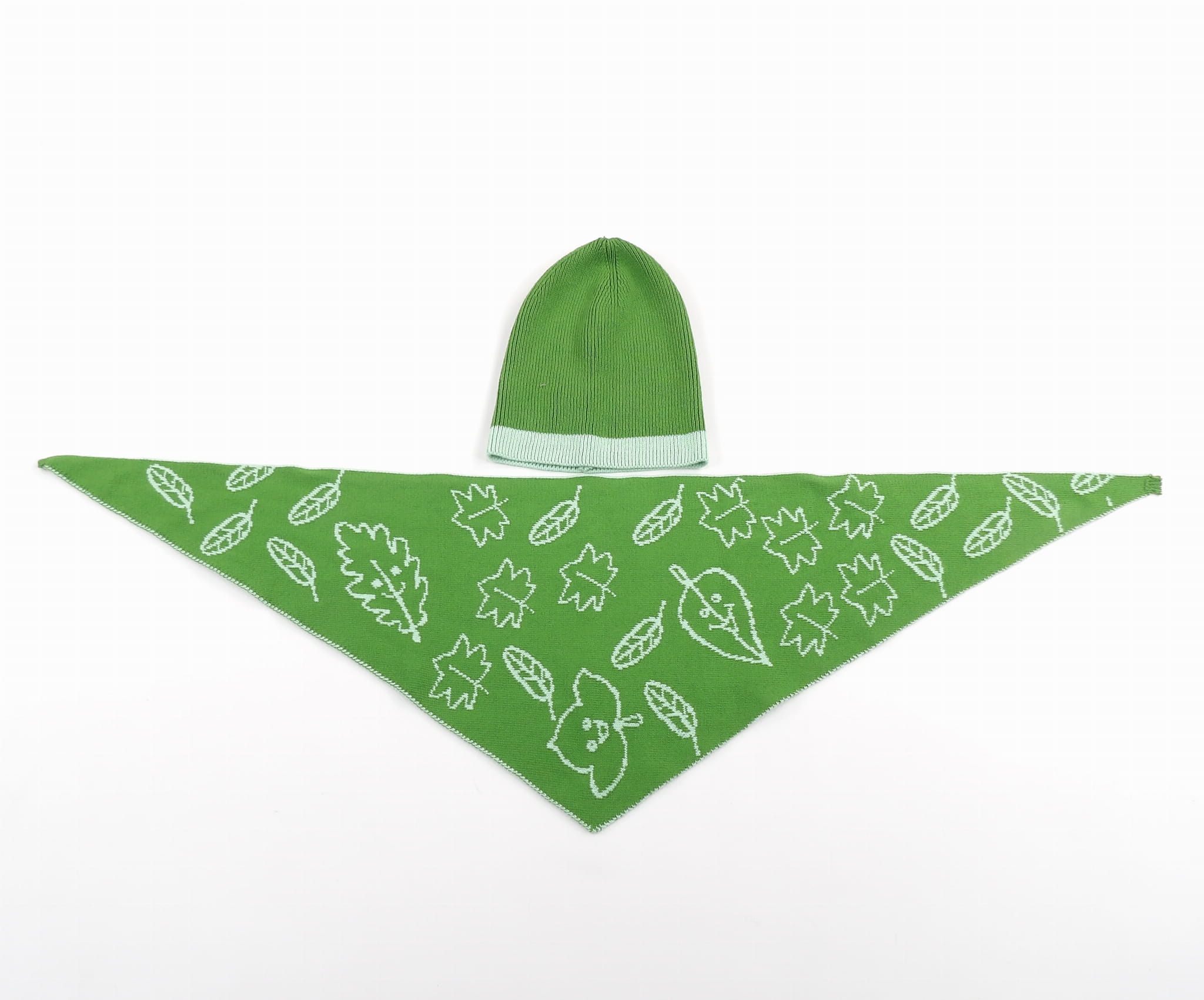 Miękki Komplet Czapki z Chustką w Listki z 100% bawełny i certyfikatem OEKO-TEX®.