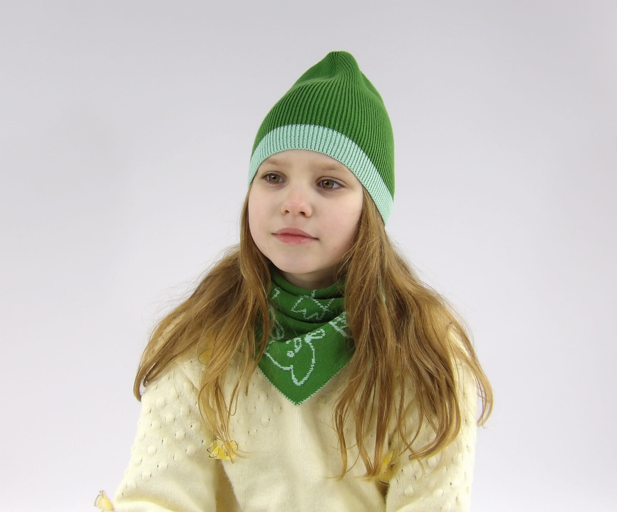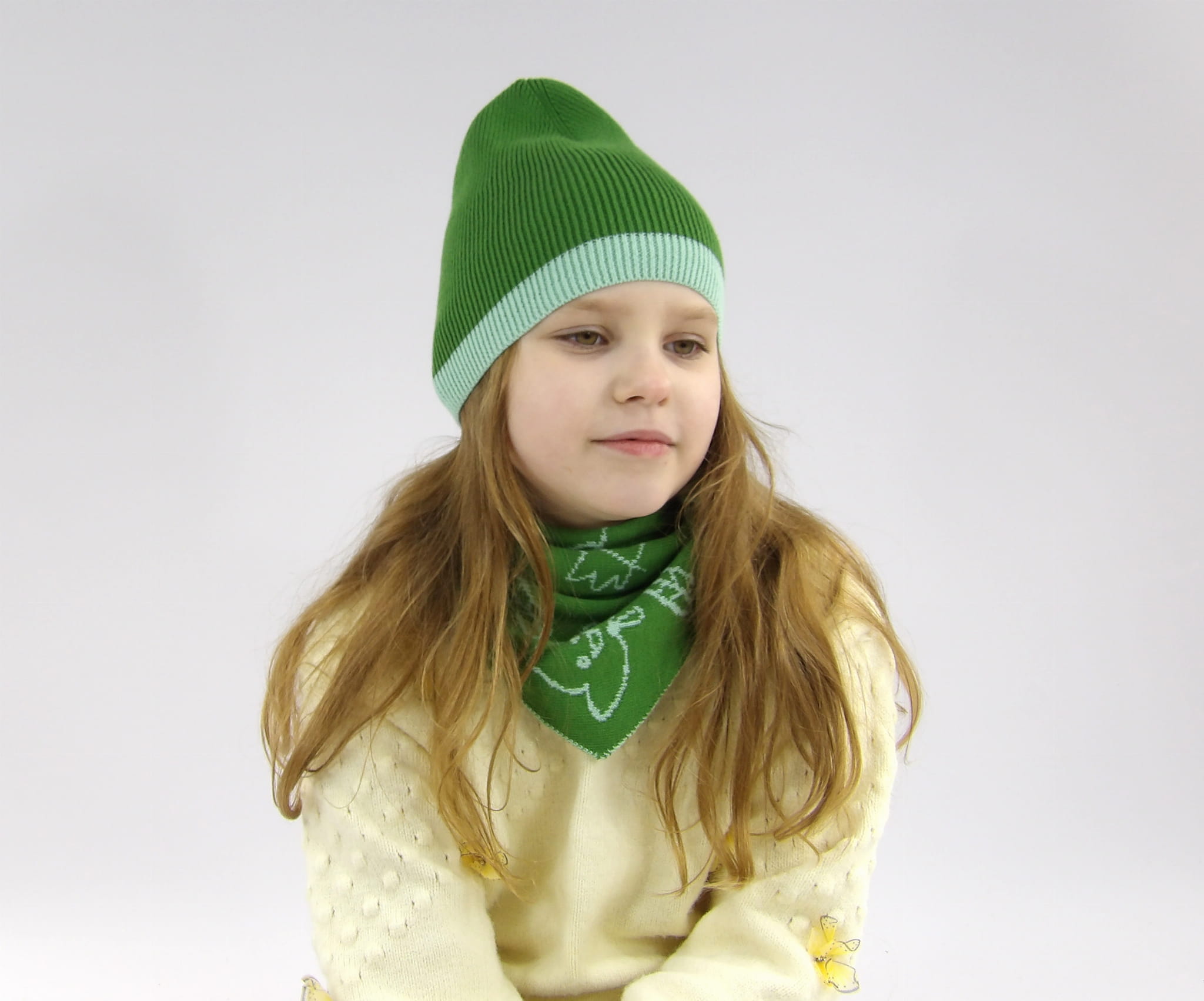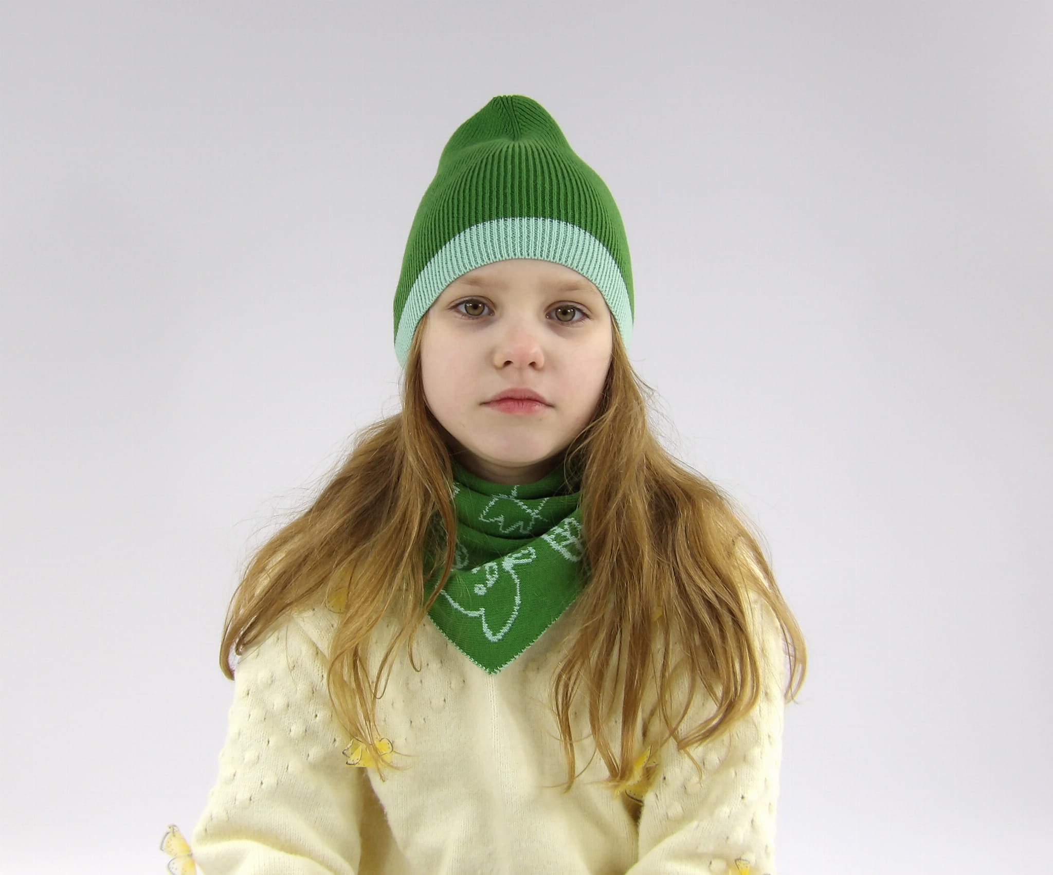 Miękki Komplet Czapki z Chustką w Listki z 100% bawełny i certyfikatem OEKO-TEX®.