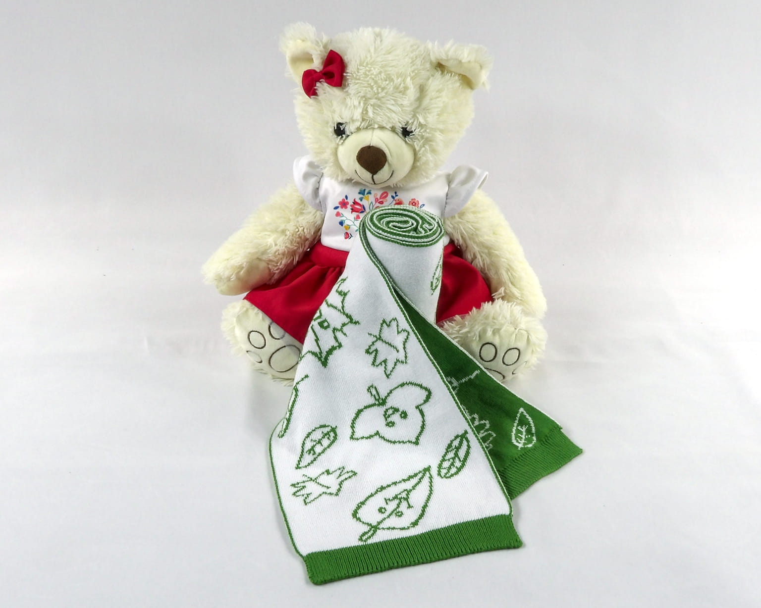 Uroczy szalik dla dzieci w listki – miękki, ciepły i pełen uroku.
